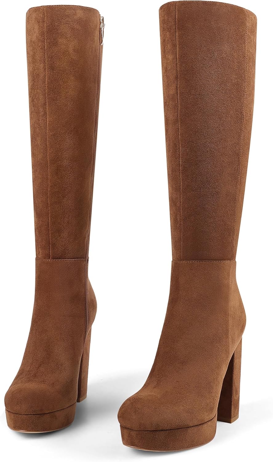 Platform Knee High Boots Women Chunky High Heel Boots for Women Round Toe Side Zipper Tall Boots Gogo Boots Wide Calf