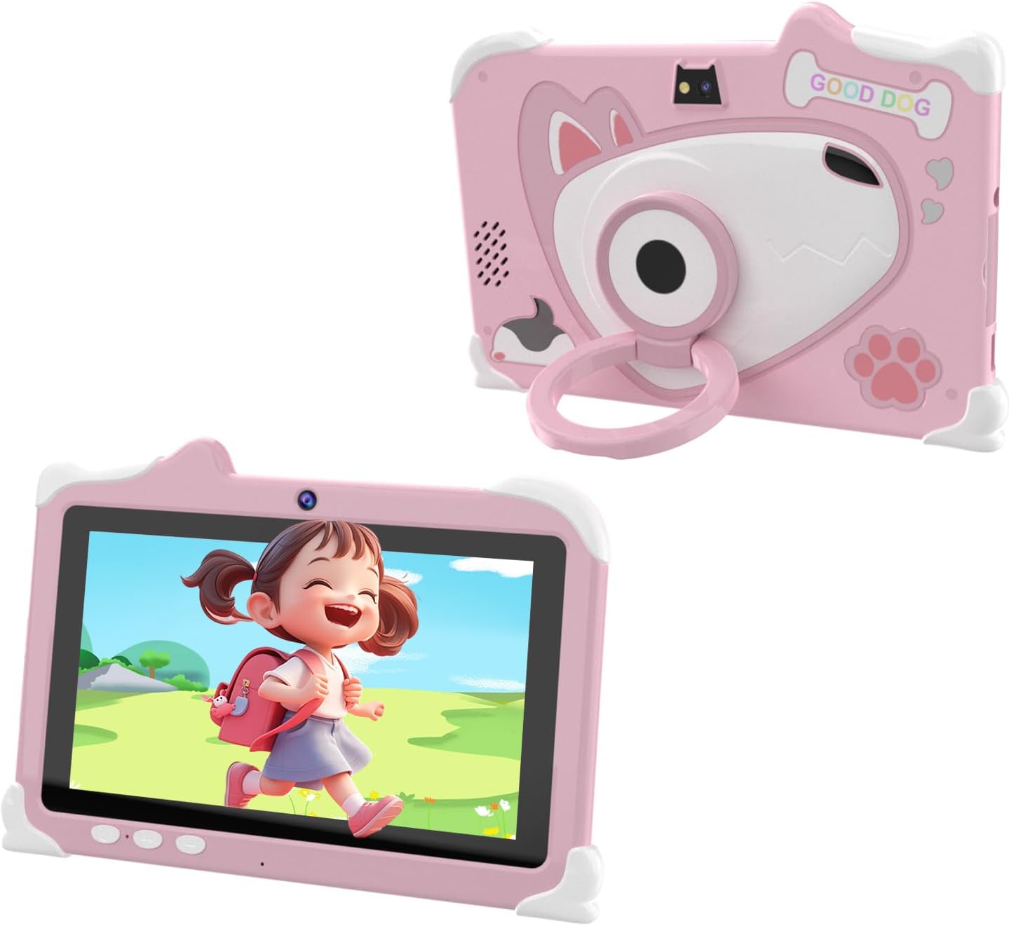 Kids Tablet, 7" Android 12 Tablet for Kids, 4GB RAM 32GB ROM with Case, 1.6Ghz Quad-core Processor 3000mAh Battery FHD Display, 5MP Camera Parental Control, Pink