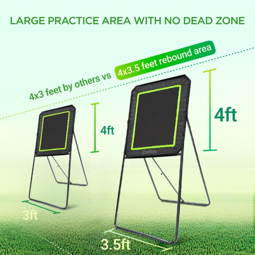 Lacrosse rebounder with LARGE PRACTICE AREA of 4x3.5 feet unlike 4x3 feet by others. Professional lacrosse bounce back rebounder for pro players.