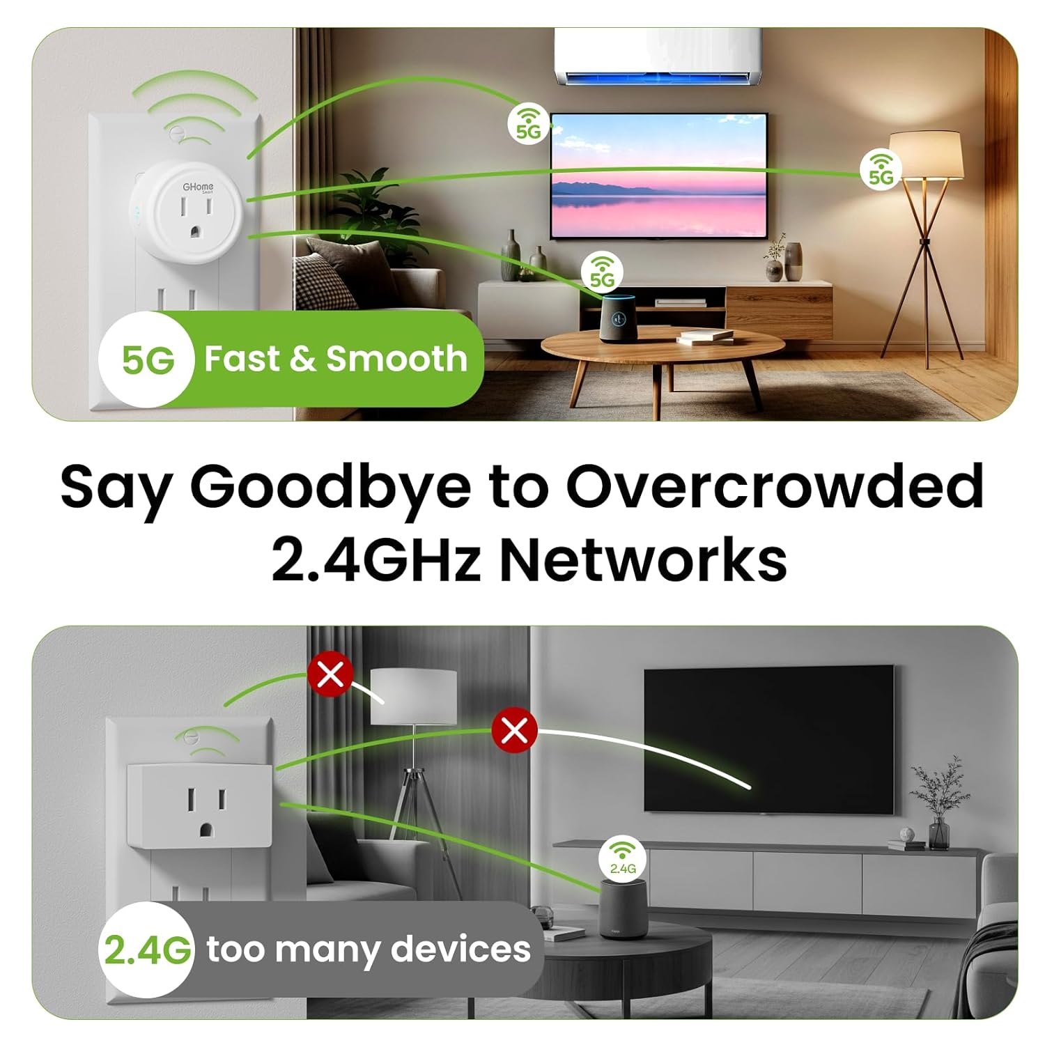 GHome Smart 5G 15A WiFi Smart Plug Compatible with Alexa and Google Home, Outlet Timer Smart Home WiFi Outlet Timer with Remote Control, 5GHz and 2.4GHz Wi-Fi Sockets, ETL FCC Listed, White, 2 Pack