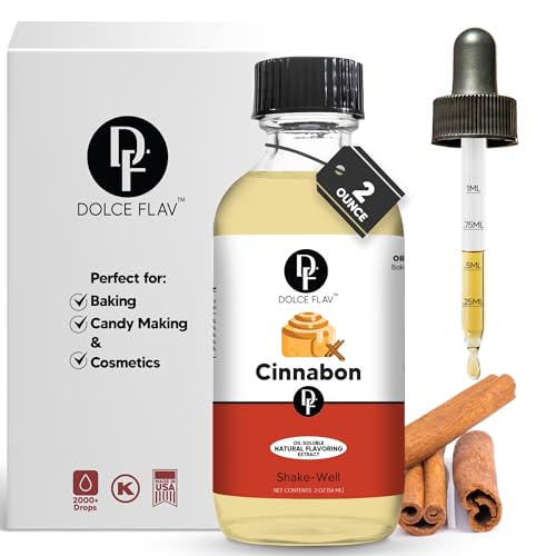 Dolce Flav Natural Cinnabon Extract – 2 Ounce Oil-Soluble Kosher, Sugar-Free, Concentrated Spicy Cinnabon Flavoring for Baking, Smoothies & Desserts, Includes Measured Dropper