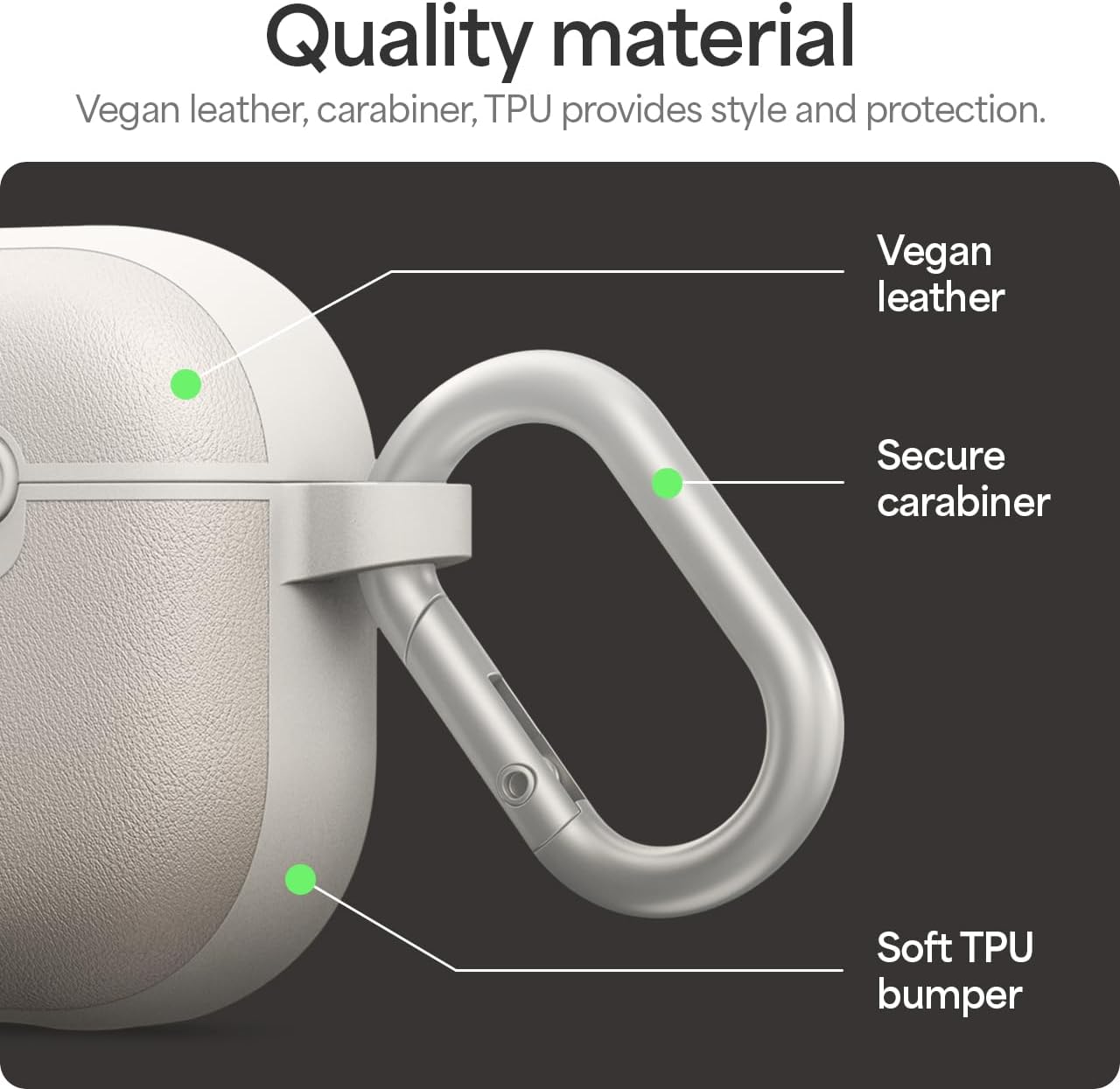 CYRILL Kajuk Compatible with Airpods 4 Case Cover, Premium Vegan Leather Case for Airpods 4 with Shock-Absorbent Bumper and Carabiner [Compatible with MagSafe] (2024) - Cream