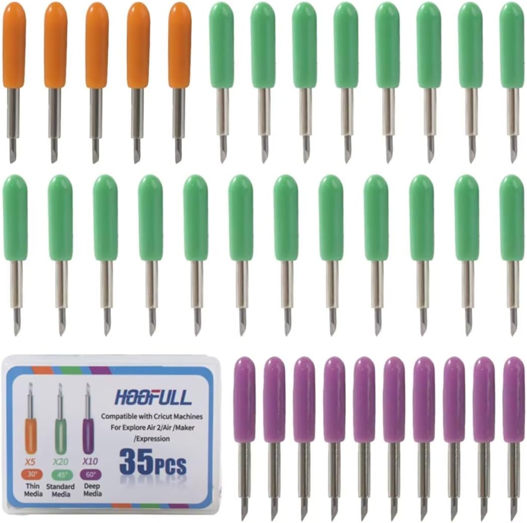 HOOFULL 35 PCS Replacement Plotter Blades Compatible with Cricut Machines for Explore Air/Maker/Expression, Include 5 PCS Thin Cutting Blades, 20 PCS Standard Blades, 10 PCS Deep Cutting Blades