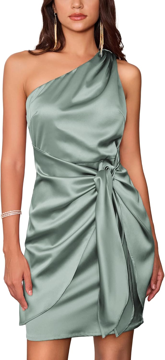 GRACE KARIN Black Dresses for Women Wedding Satin Bodycon Sleeveless Dresse Cocktail Party Mini Dress Green, 10