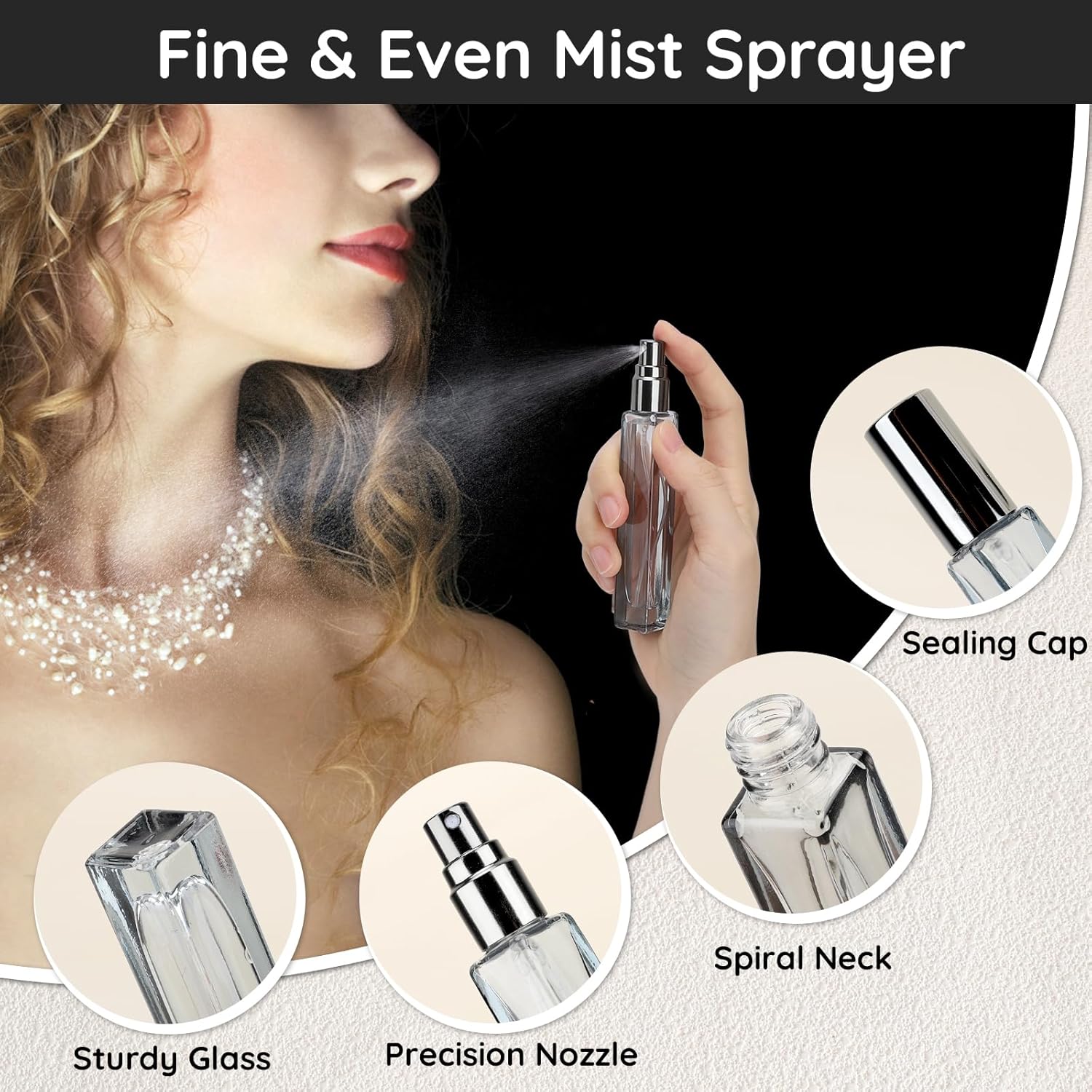 【Multi-application】Ideal for perfume, fragrances, cologne, face spray, toiletries product, various water-based liquids in mind. An ideal cosmetic accessory for daily activity, especially for traveling and outgoing.