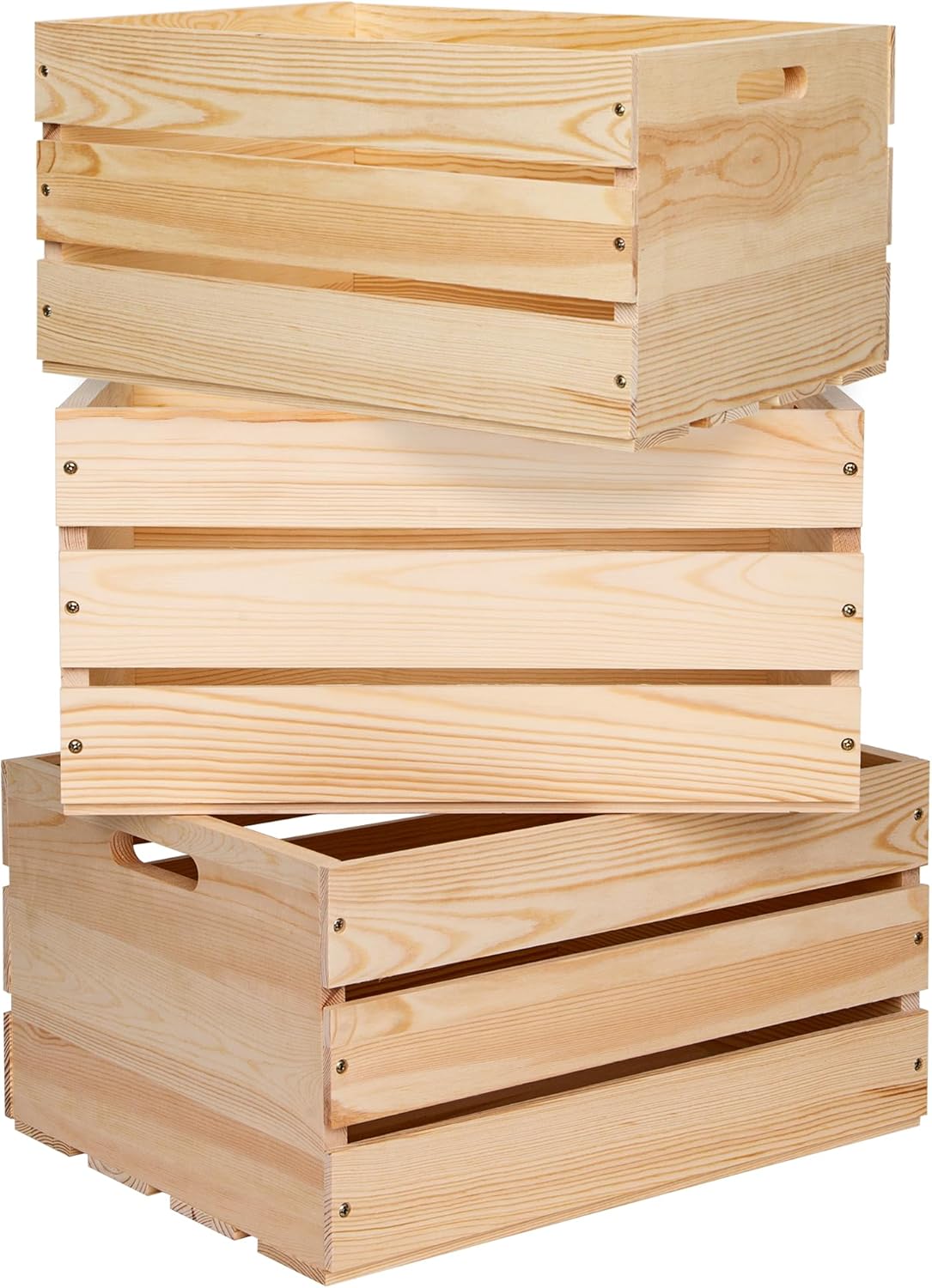 Extra Large Pine Wood Crates For Storage, Vinyl Records Storage Crates,The Storage Crates Are Made Of Pure Natural Solid Wood,Exuding Natural Pine Flavor,Unfinished Wooden Crates For Display . (3)