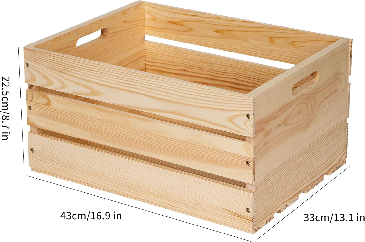 【Size】:Based on the customer's suggestion, we have developed a larger wooden storage boxes, which is 17 inches long, 13 inches wide, 8.7 inches high, and has a capacity of 30 liters. It can store more items, such as clothes, books, beer, milk, etc.