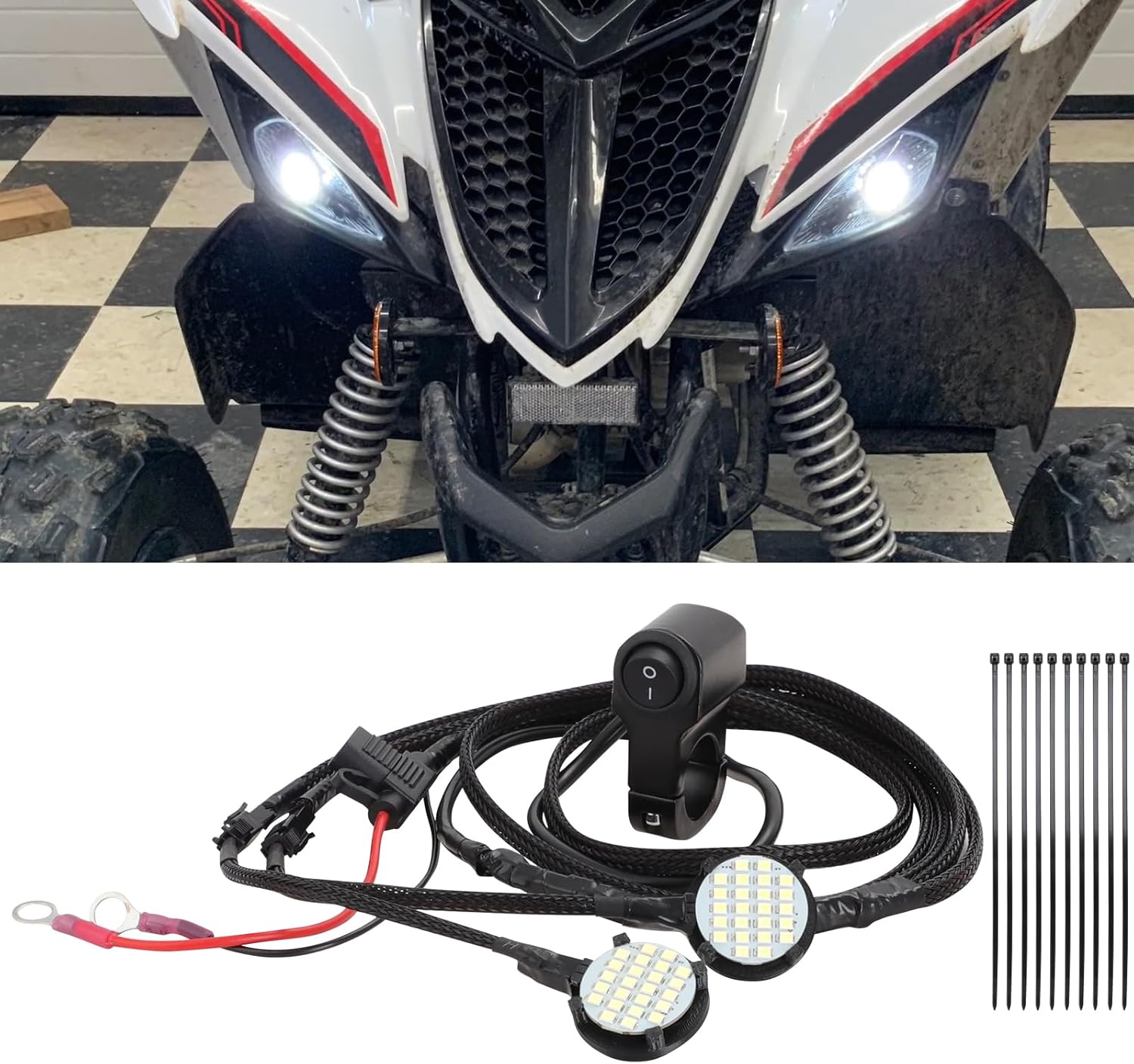 AUTOVIC Left & Right Headlight Kit for 2016-2024 Yamaha Raptor 90 Raptor 110 Headlight Kit With Switch Wire Harness Plug Waterproof LED Headlight Wiring Harness Kit White Light