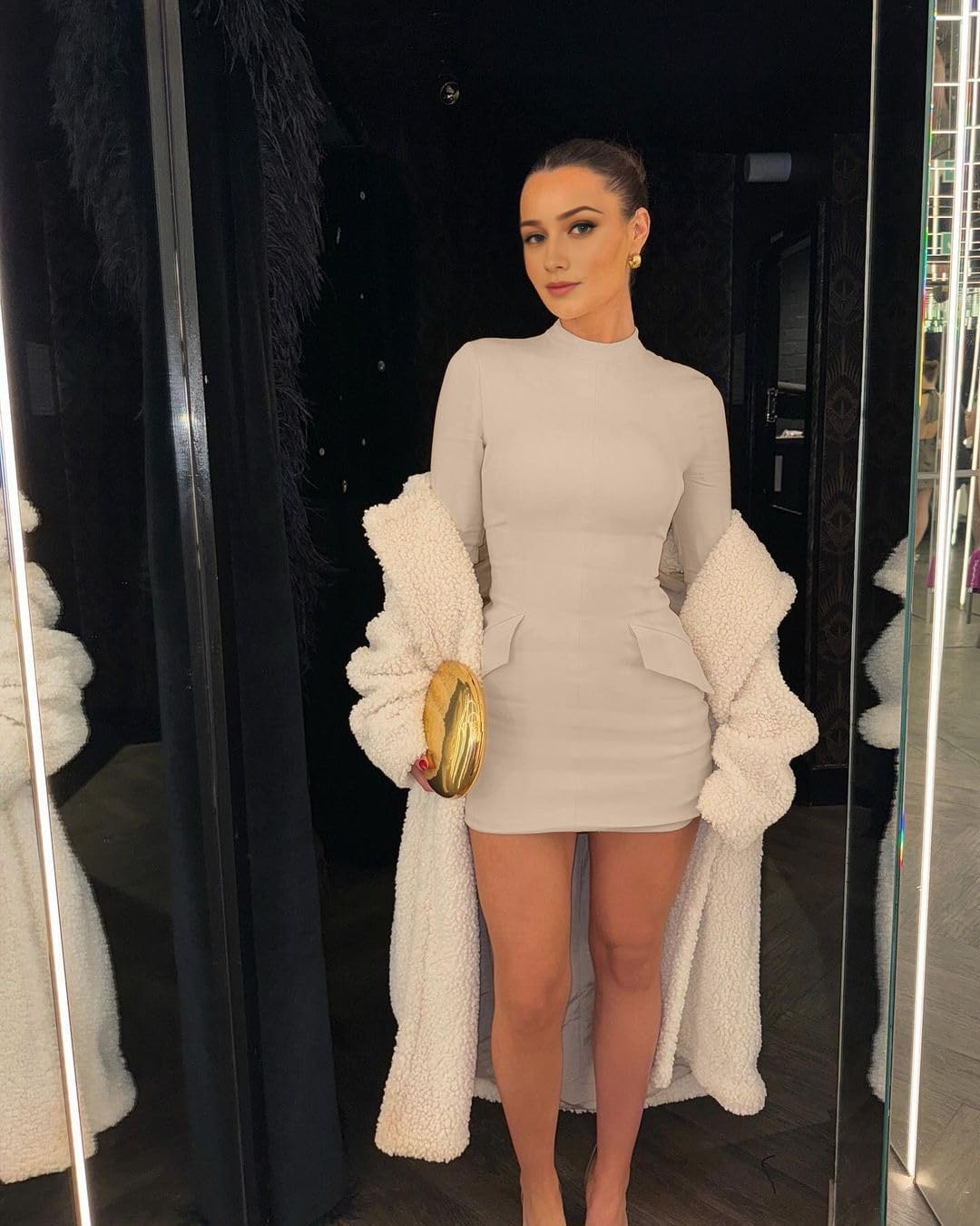 OFEEFAN Women's Fall Long Sleeve Mock Neck Dress Basic Party Club Bodycon Mini Dresses
