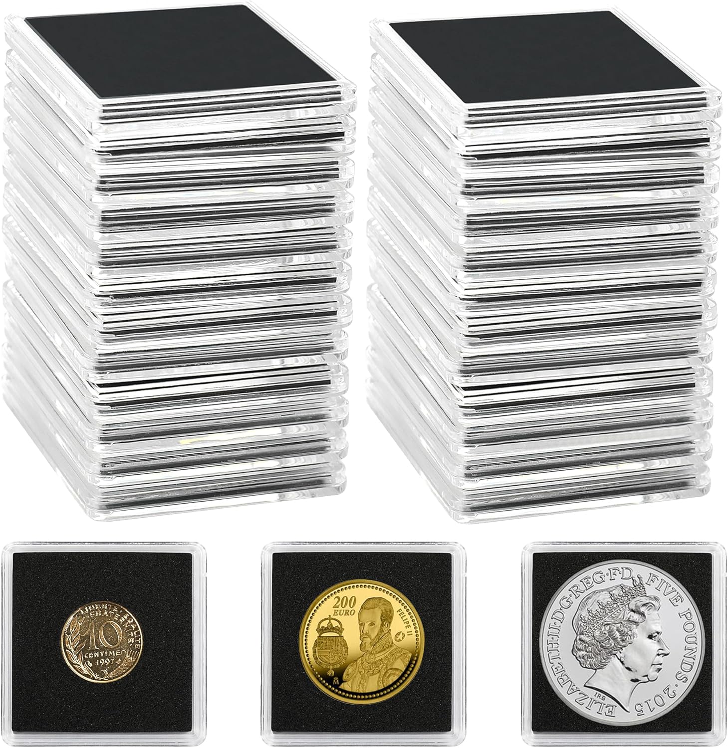 Complete Set: This set includes 25 square-shaped ABS coin capsules and 25 black EVA foam gaskets, providing versatile storage options for various coin sizes.