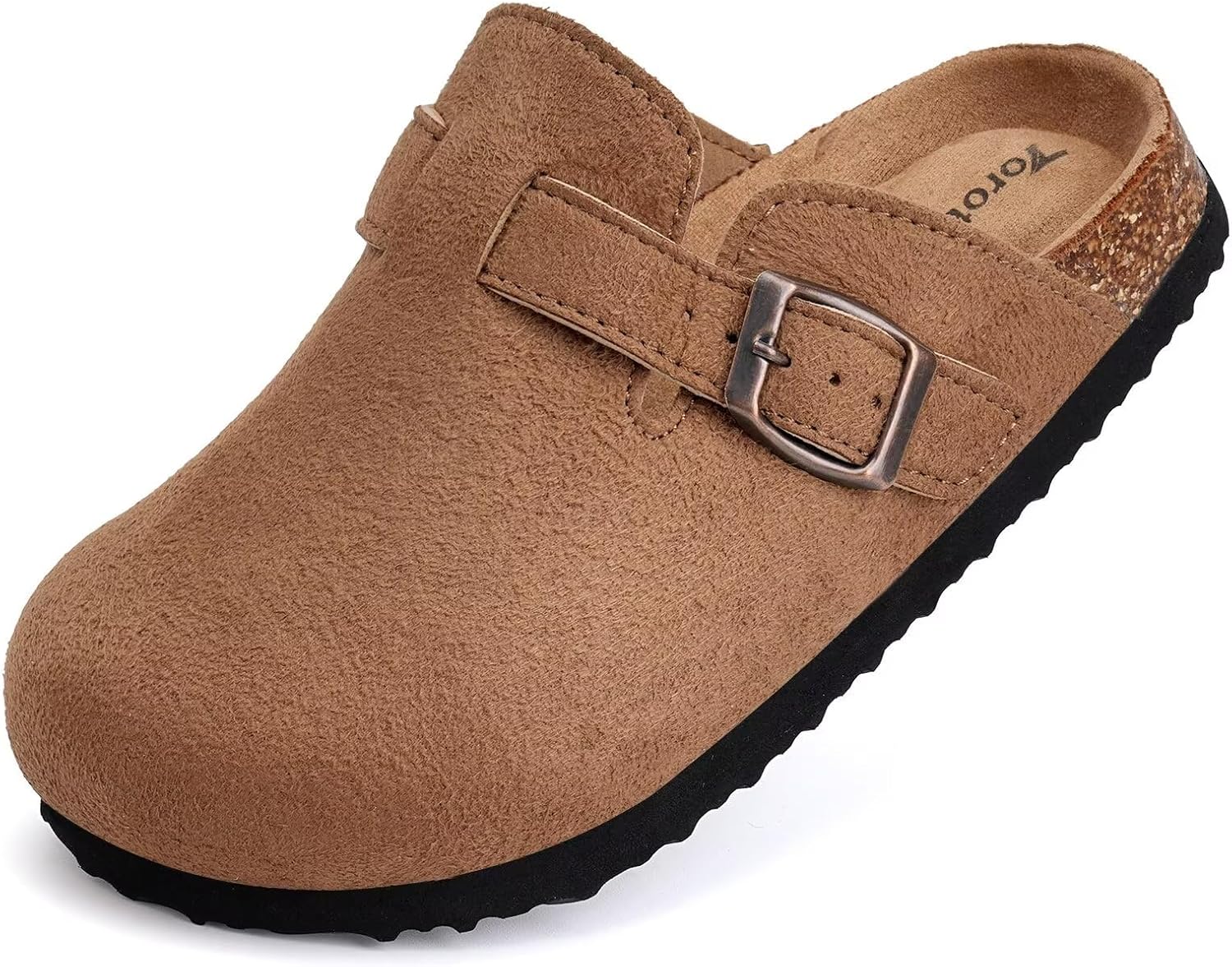Torotto Kids Suede Clogs Cork Footbed Toddler Slippers with Arch Support & Adjustable Straps for Boys Girls Indoor & Outdoor