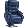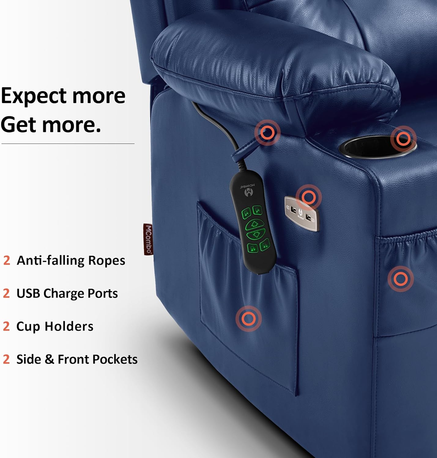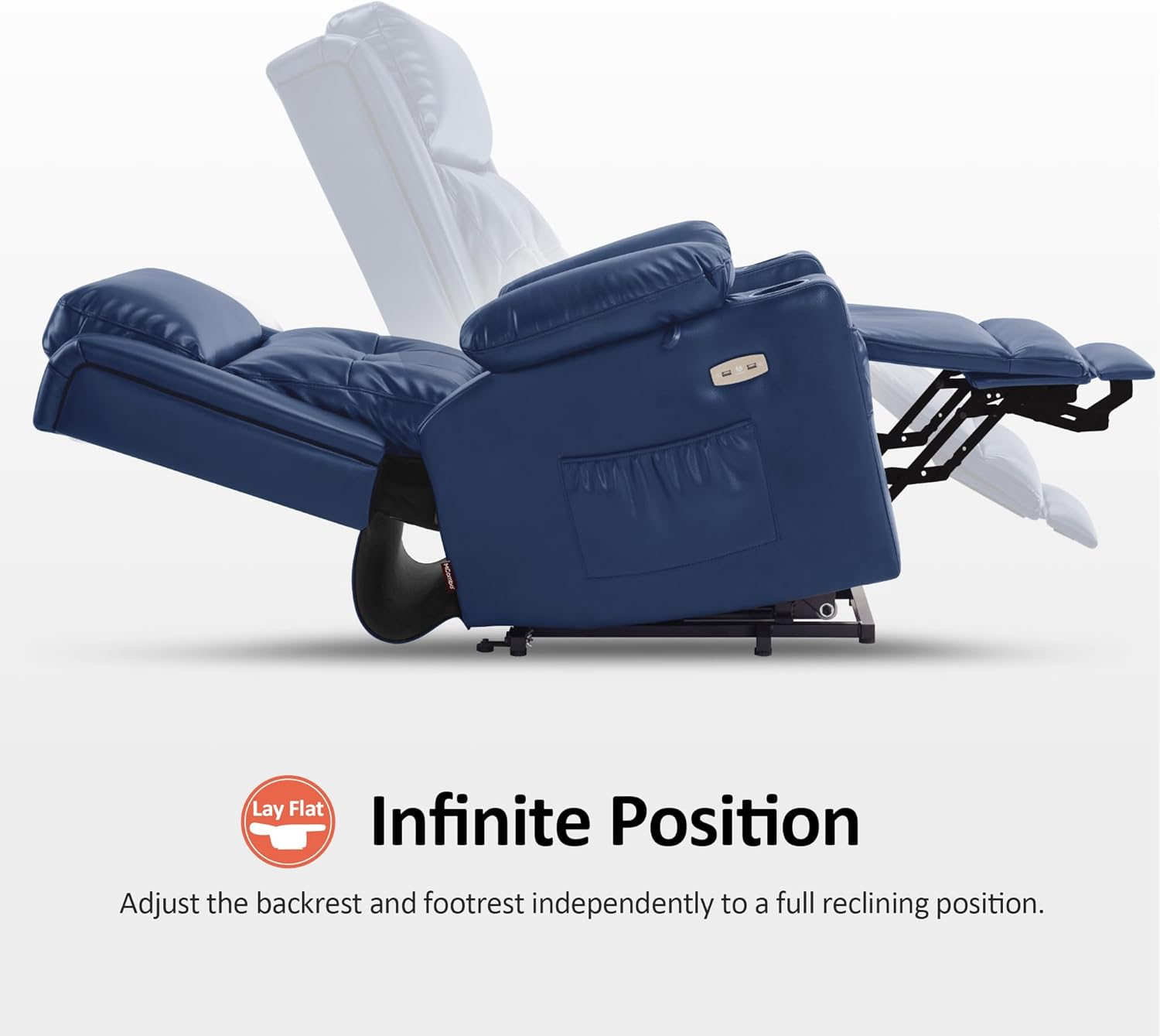 MCombo Large Triple Motor Power Lift Recliner Chair with Massage and Heat for Elderly People, Adjustable Headrest, Infinite Position, USB Ports, Faux Leather 7662 (Blue, Large)