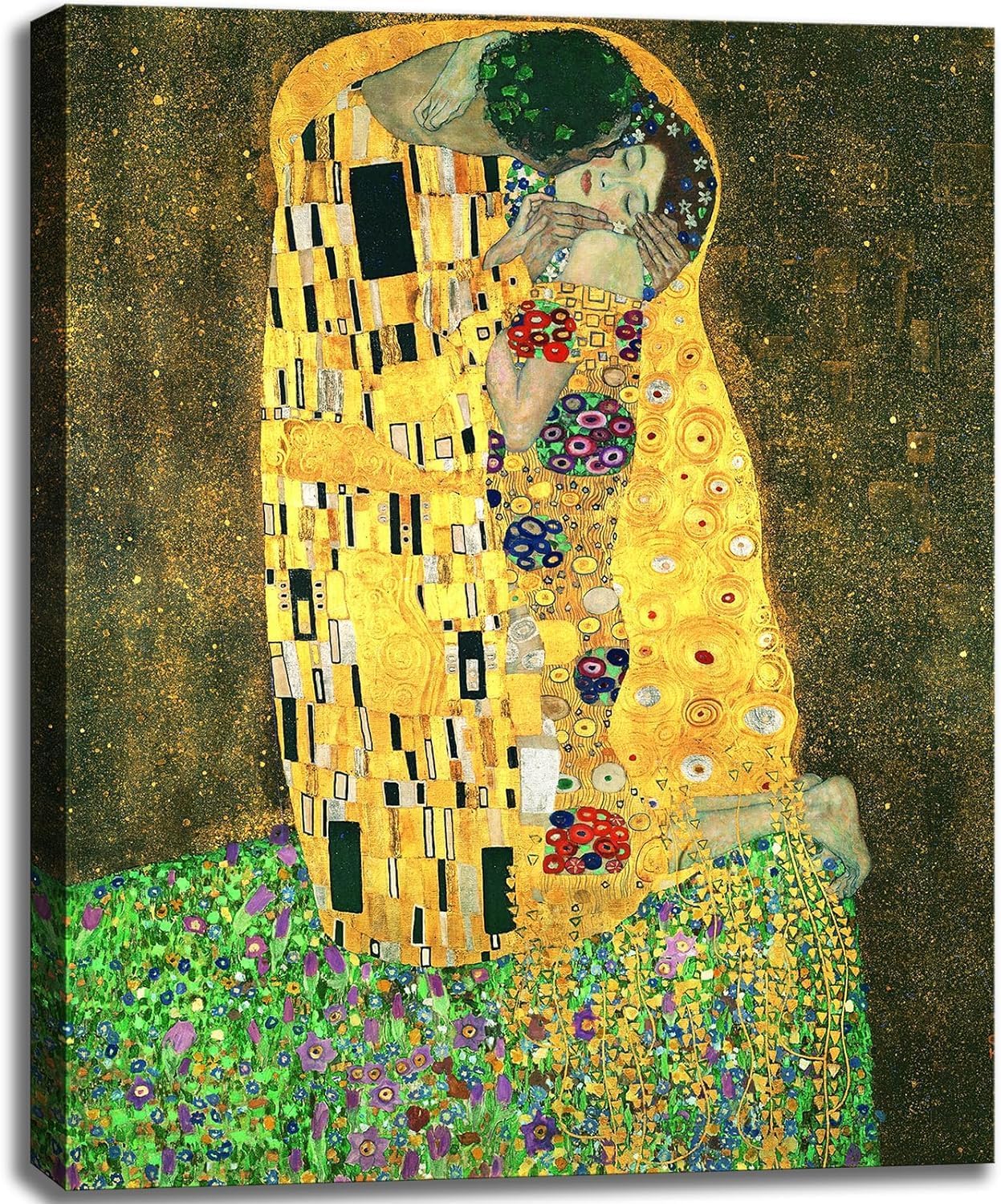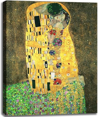 msspart Canvas Prints Wall Art The Kiss Painting by Gustav Klimt, Famous Artwork Poster for Living Room, Bedroom Office Home Decoration 16"x24"