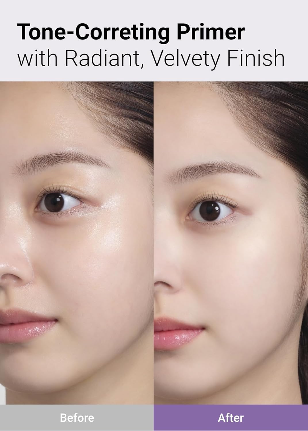 Moist and lightweight tone-up primer with smooth adherence and a velvety finish.