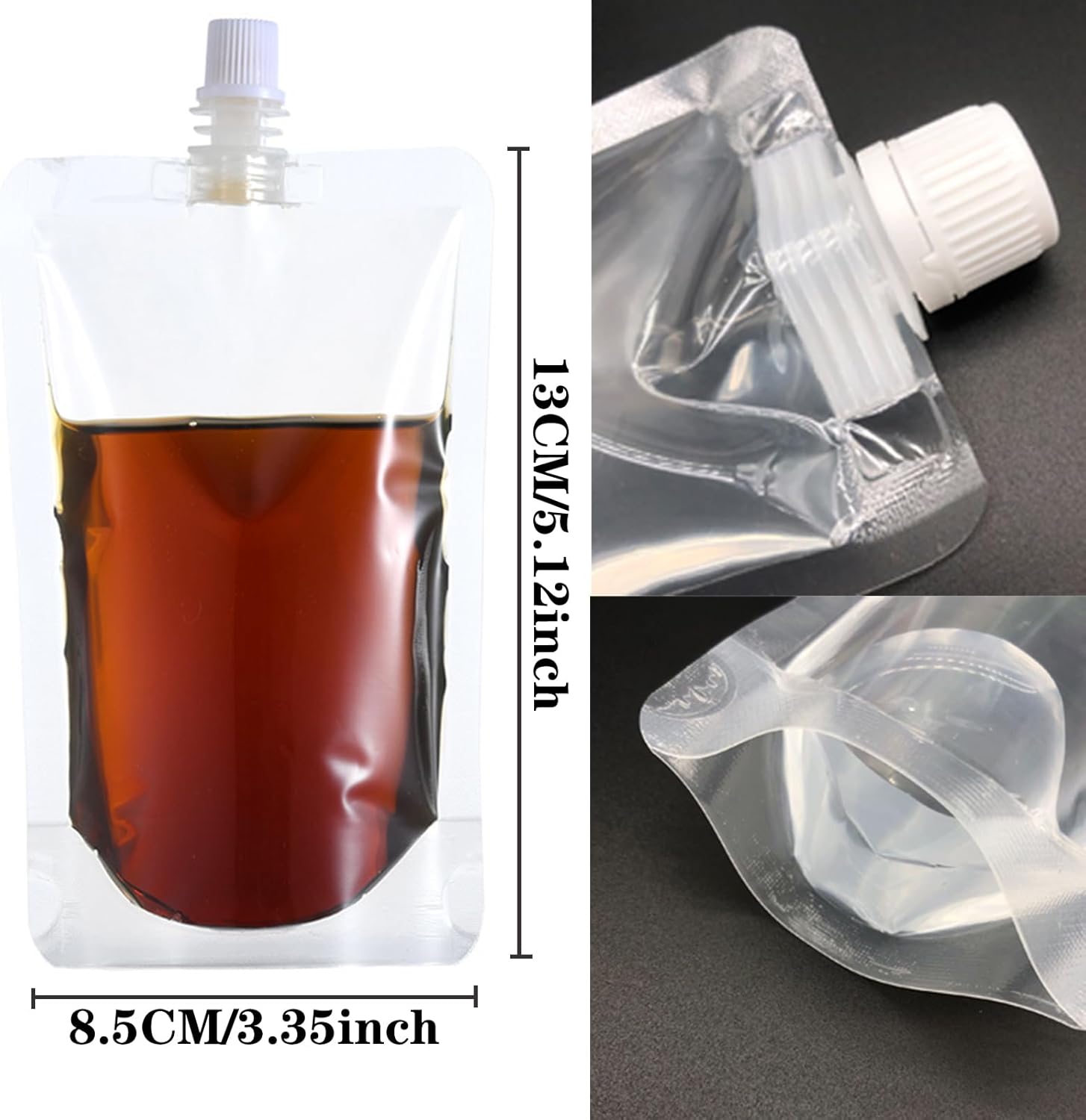 Easy to use: These plastic beverage bottle bags come with nuts to help seal, leak, and have no odor. The included funnel can help you easily and practically pour various beverages, bringing you a lot of convenience.