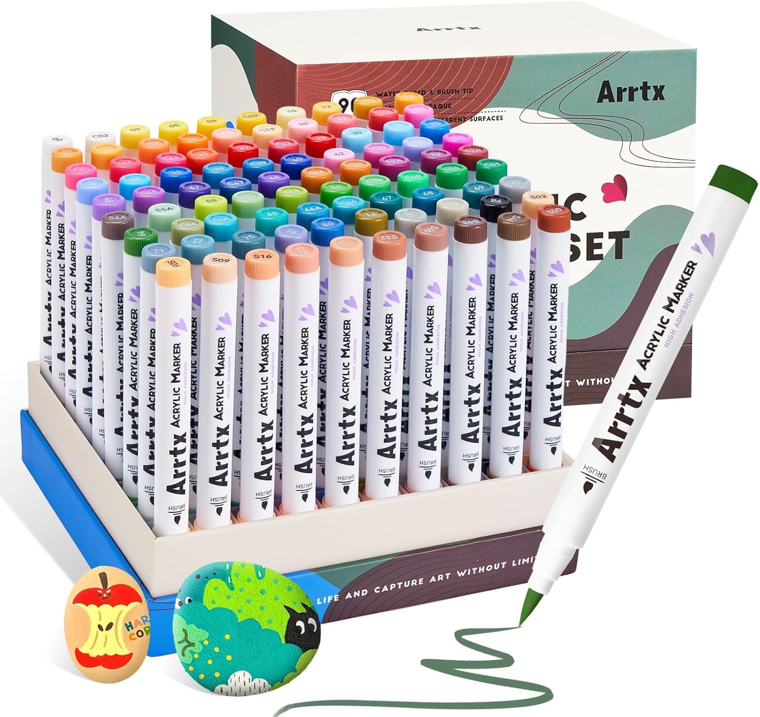 Arrtx 90 Colors Paint Markers, Acrylic Paint Pens for Artists Adults Coloring Drawing - Extra Brush Tip for Rock Painting, Wood, Canvas, DIY Crafts Making Art Supplies
