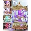 Clockwork Carousel Music Box - 3 Rotating Horses, Color-Changing LED, Timeless Melody | Luxury Home Decor for Enthusiasts, Ideal for Christmas, Birthdays, Valentine's (Pink)