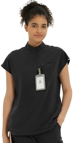 Kitmaz Medical Scrub Tops for Women - Soft Stretch Mandarin Collar Oversized Fit Scrub Shirts with 3 Pockets