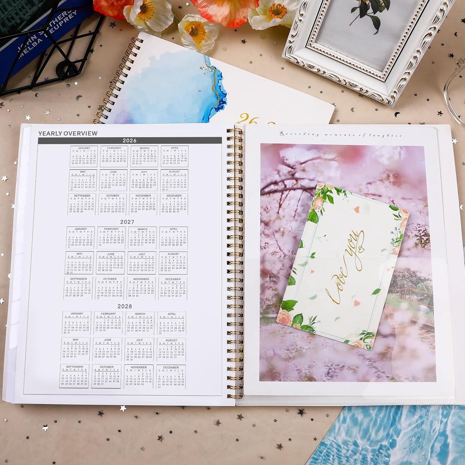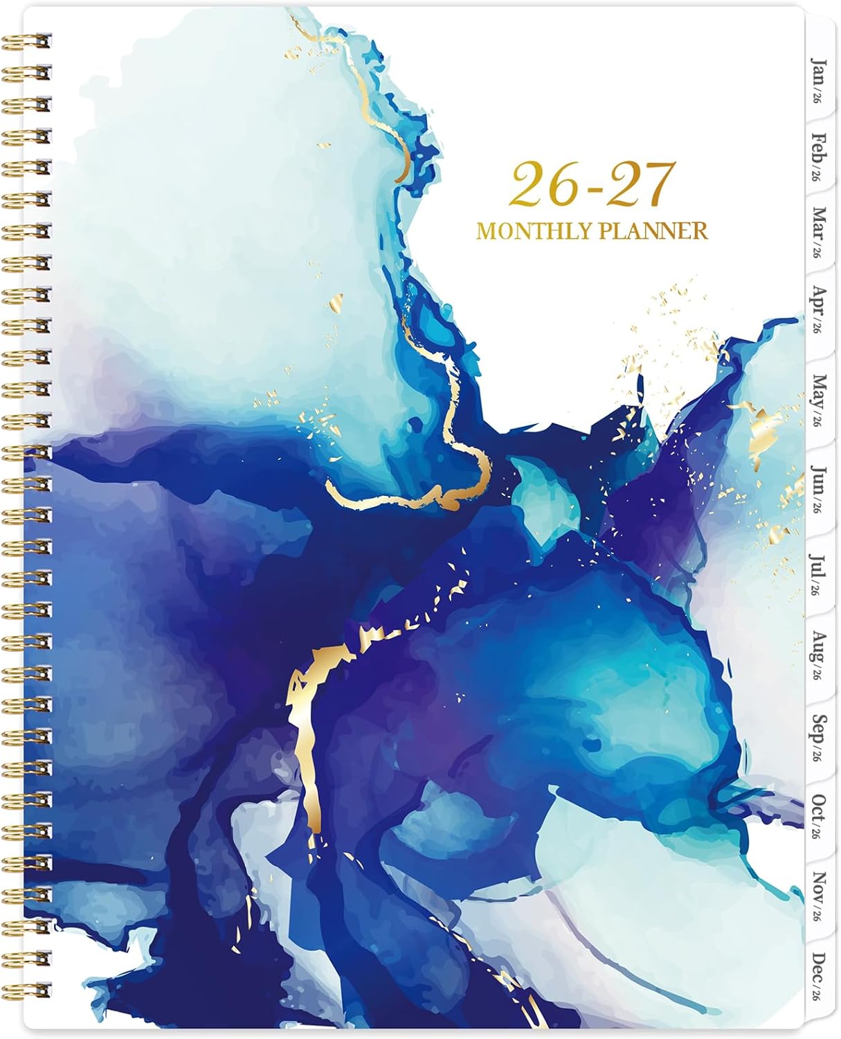 🌊PROFESSIONAL DESIGN - 9" x 11" Monthly Calendar Planner Page | 4 Important Contacts Pages |2-year Monthly Pages | 6 Contacts Pages | 4 Passwords | 3 Notes pages | 2026-2027 Yearly Overview |Holidays |Inner Pocket | Flexible cover | 2-year Monthly Tabs