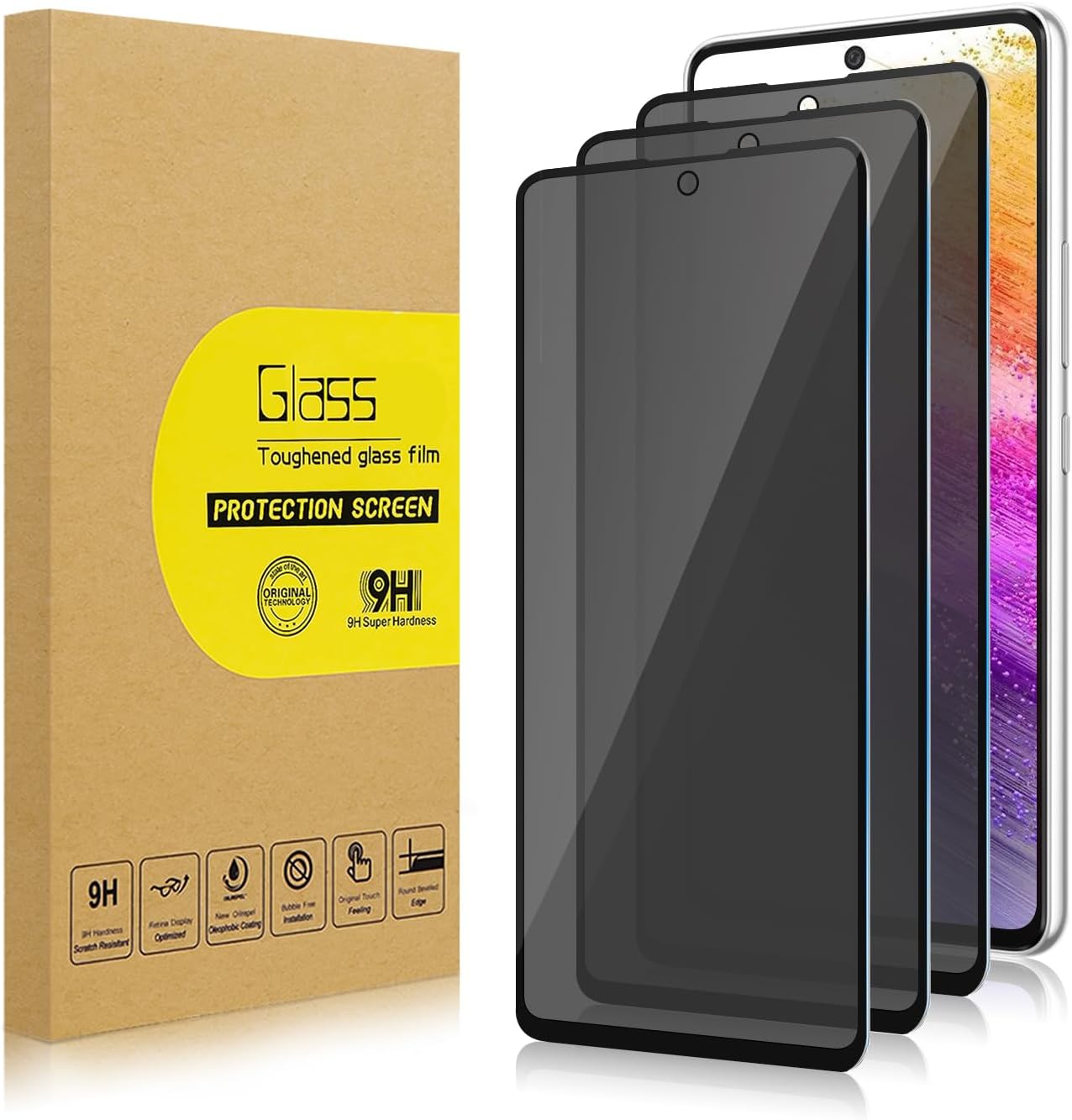 3 Pack Privacy Screen Protector for Samsung Galaxy A73/ A72/ A71 [Anti-Spy Tempered Glass], Ultra HD, Anti-Scratch, Bubble-Free, Easy Install 9H Protective Glass for Galaxy A73/ A72/ A71