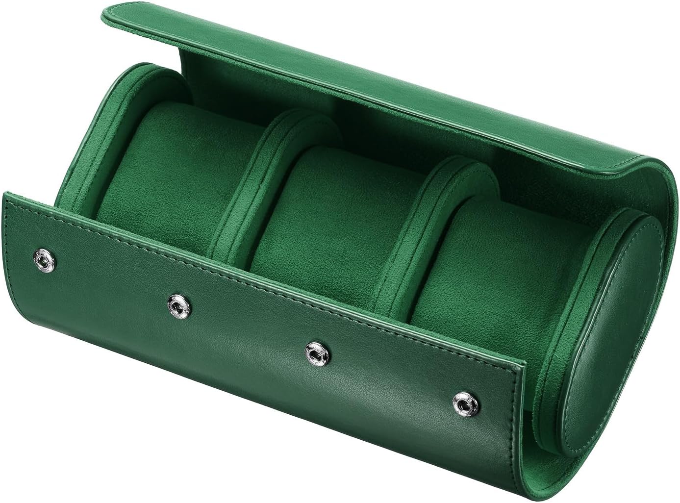 uxcell Leather Watch Travel Case Single Watch Roll Storage Box Organizer for Men Women Holding Storaging Displaying, 3 Slot, Green