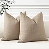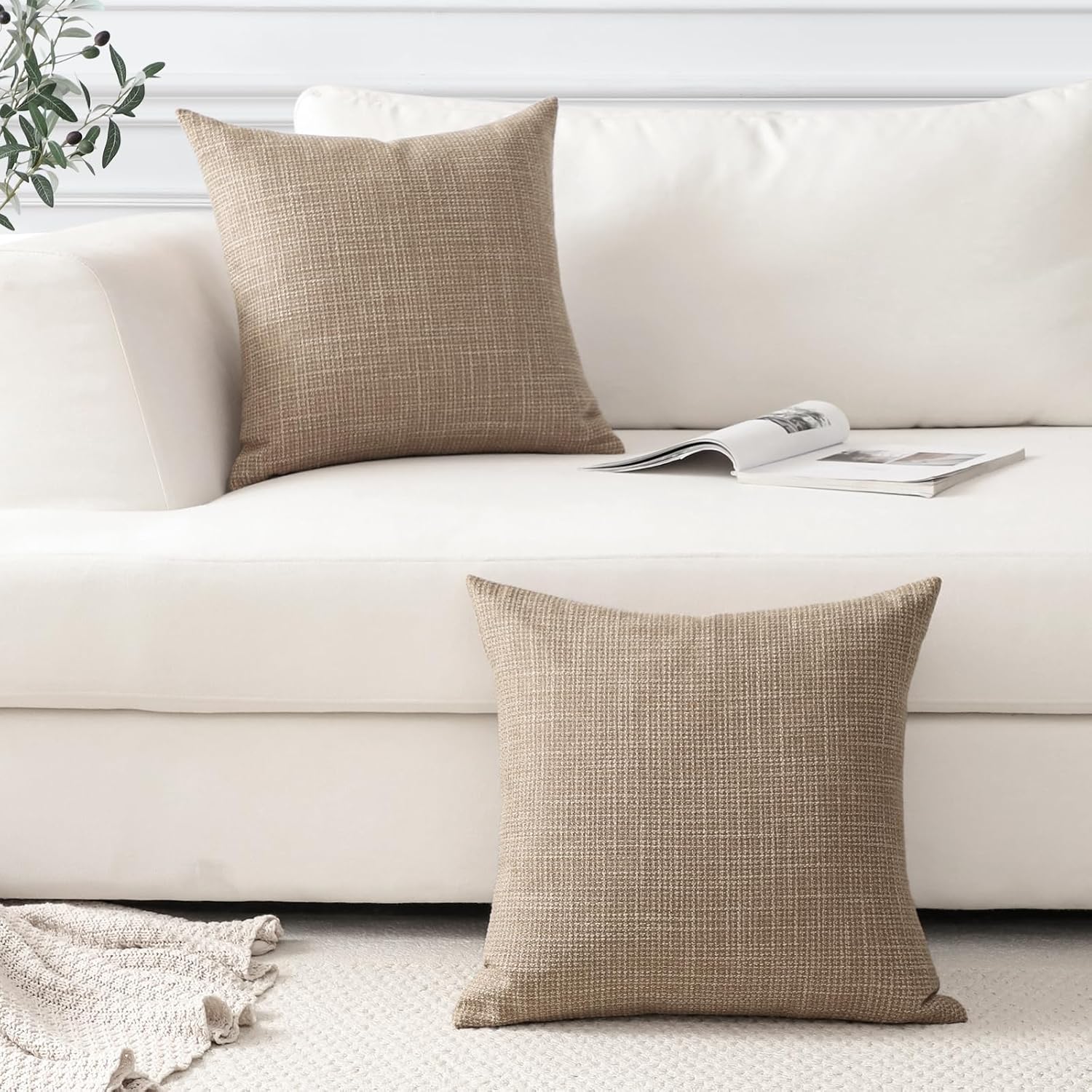 OTOSTAR Linen Throw Pillow Covers Set of 2 Decorative Square Pillowcases Cushion Covers 14x14 Inch for Home Decor Sofa Bedroom Car 35 x 35 CM Light Coffee