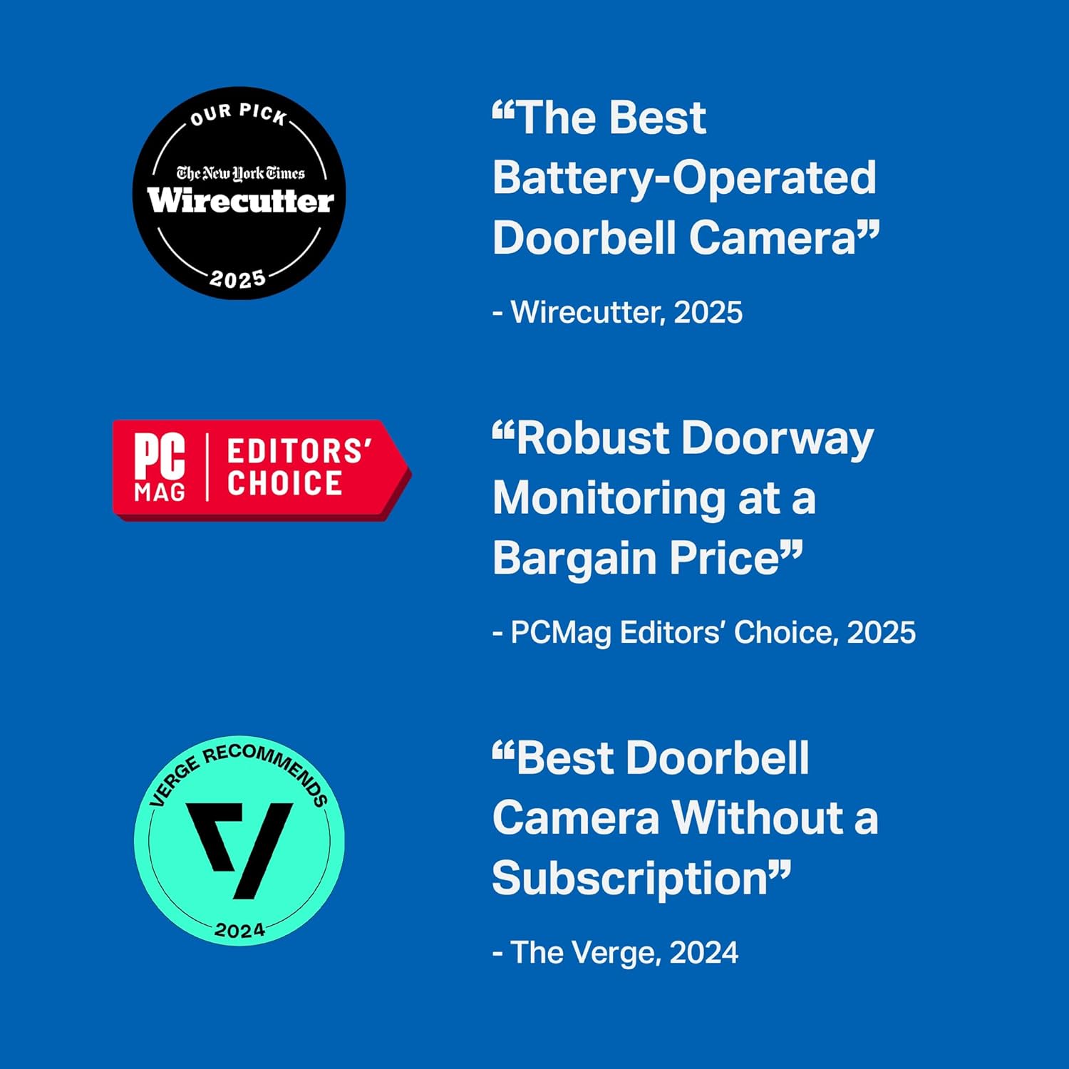 Tapo by TP-Link Smart Video Doorbell Camera with Chime, Battery or Wired, 2K QHD Color Night Vison, No Monthly Fee, 180° Ultra-Wide Head-to-Toe View, Ring Call, Free AI Detection, Local Storage (D225)