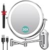 1X/20X Wall Mounted Makeup Mirror with Light, 8" Rechargeable Double-Sided Magnifying Mirror, Vanity Mirror Dimmable 3 Color Light, 360° Extension Rotation Foldable 14.5 Inch Arm, Chrome