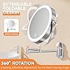 💫360°S𝘄𝗶𝘃𝗲𝗹 E𝘅𝘁𝗲𝗻𝗱a𝗯𝗹𝗲: It can be rotated 360°. The illuminated wall-mounted mirror with an extendable arm allows you to position your mirror for perfect viewing. Easily adjust the arm to your desired angle. When not in use, simply fold the mirror against the wall to save space.