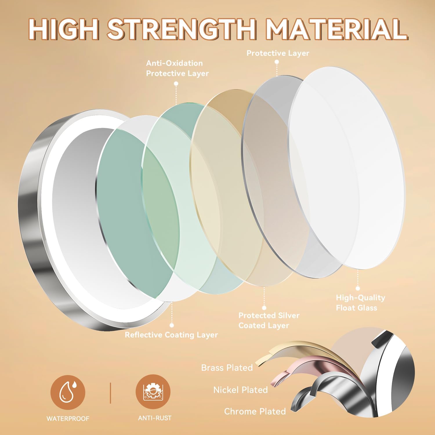 🔋T𝘆𝗽𝗲-C R𝗲𝗰𝗵a𝗿𝗴𝗲a𝗯𝗹𝗲 & E𝗻𝗲𝗿𝗴𝘆 Sa𝘃𝗶𝗻𝗴: Auxmir wall mounted makeup mirror features a rechargeable 3200 Lithium battery, Type-C cable is included. Normal full charge time is around 4 hours. Moreover, it features a power-saving design that automatically shuts off the LED light after 30 minutes of no use.