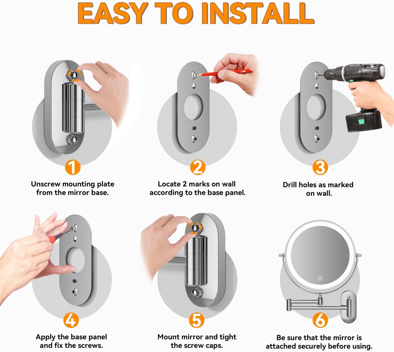 🎁I𝗱𝗲a𝗹 G𝗶𝗳𝘁 & E𝘅𝗰𝗲𝗹𝗹𝗲𝗻𝘁 S𝗲𝗿𝘃𝗶𝗰𝗲: Auxmir wall mount makeup mirror is a perfect Gift for friend, family or lover . Auxmir provides customer services and 36-months warranty. If you have any inquiries, please don't hesitate to reach out to us! Note that the mirror may not be fully charged upon leaving the factory, so make sure to charge it fully before using it for the first time.
