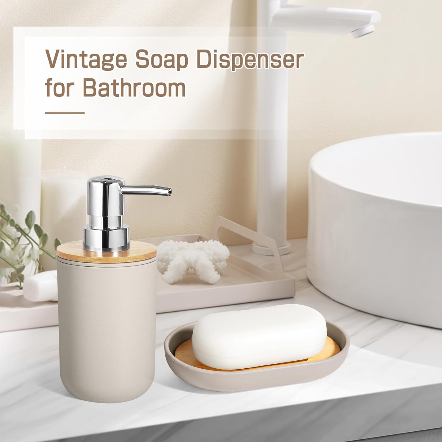 【Bathroom Soap Dispenser Set With Drip-Free Pump】Our bathroom accessories sets completely feature an upgraded bamboo pump, which is easy to press and has no leakage, avoids spraying the bathroom countertop everywhere, and effectively prevents rust, no longer worry about washing hands with rusty soap. The boho soap dispenser is suitable for hand soap, dish soap, conditioner, lotion, etc. Reusable and refillable. You simply get what you pay for.