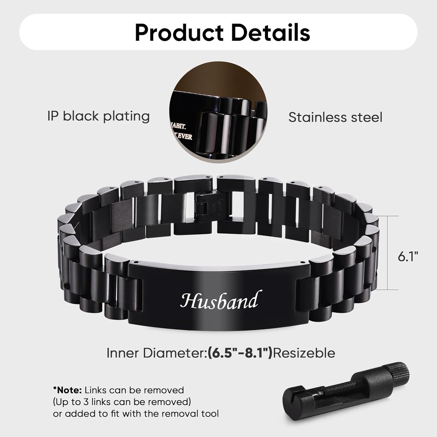 VNOX Masculine Watch Band Stainless Steel Link Bracelet Personalized Jewelry Gift for Men DAD Father Husband Boyfriend