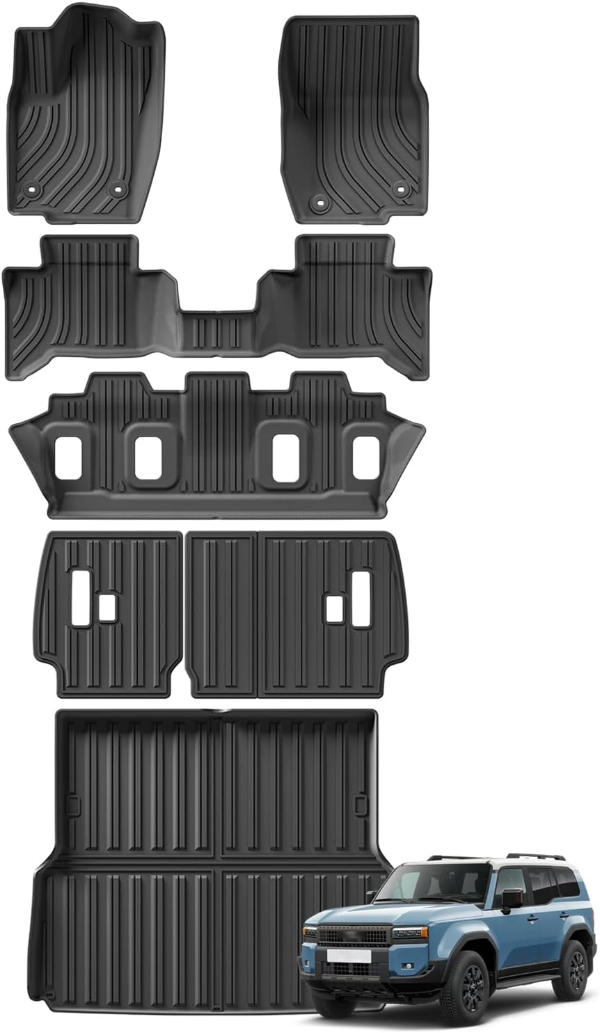 SMABEE Floor Mats & Backrest Mats & Cargo Liner for 2024 2025 Toyota Land Cruiser Prado 250 (Only for 5 Seat,US Version) Accessories TPE Floor Liners Back Seat Covers Truk Mat Full Car Mats, Black