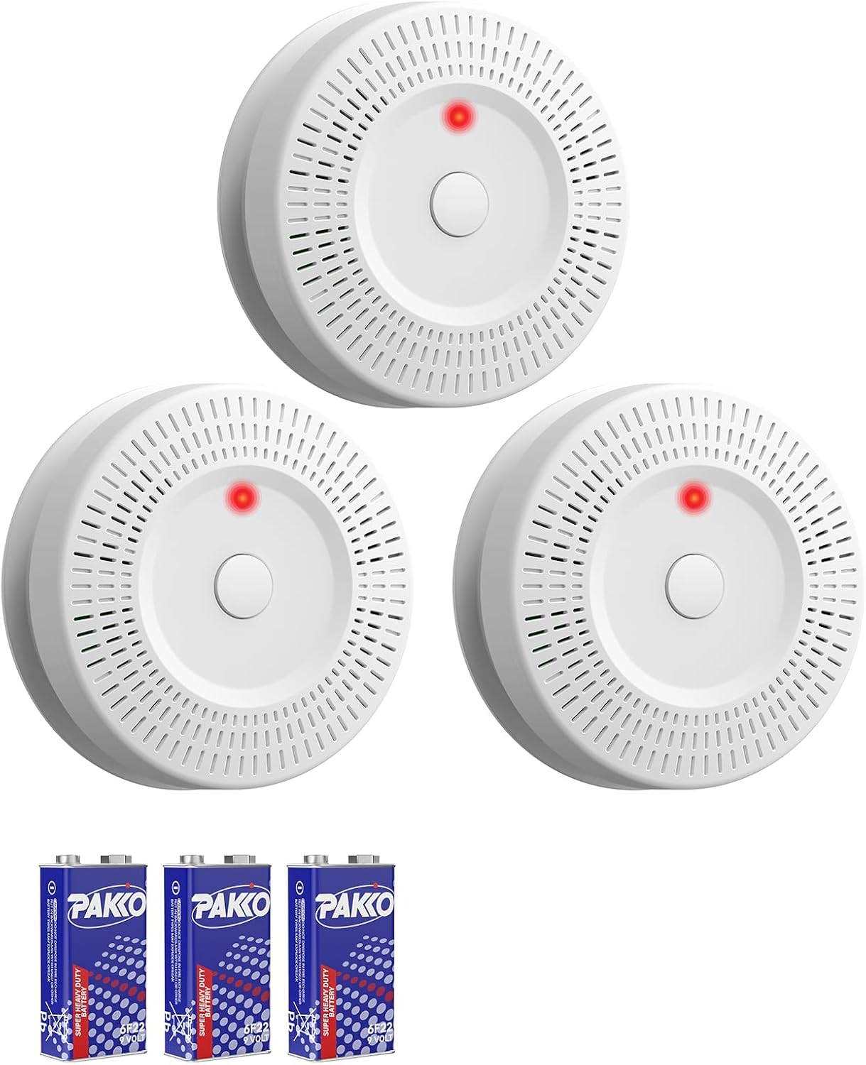Smoke Detector, ‎Lecoolife, ‎9V Battery Operated Smoke Alarm with LED Indicator, Silence Button, Battery Powered, White, 3 Pack