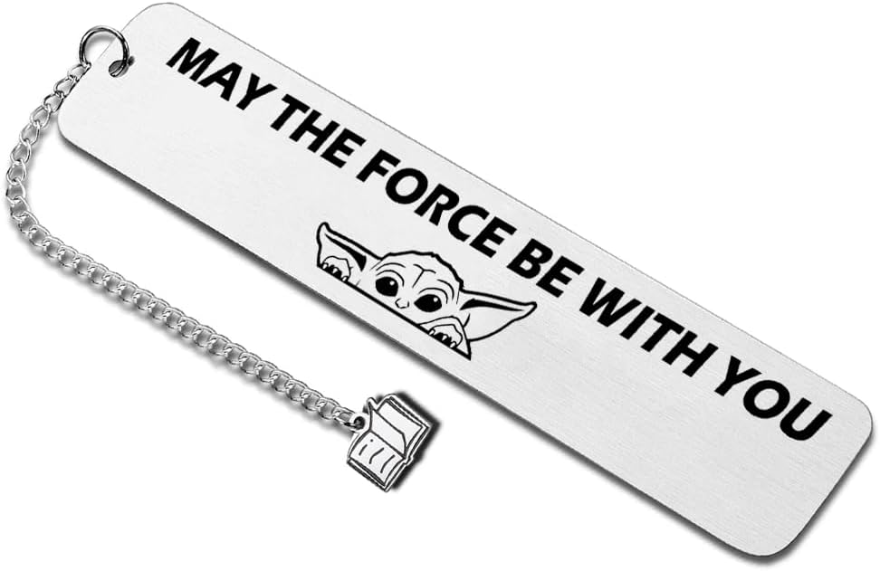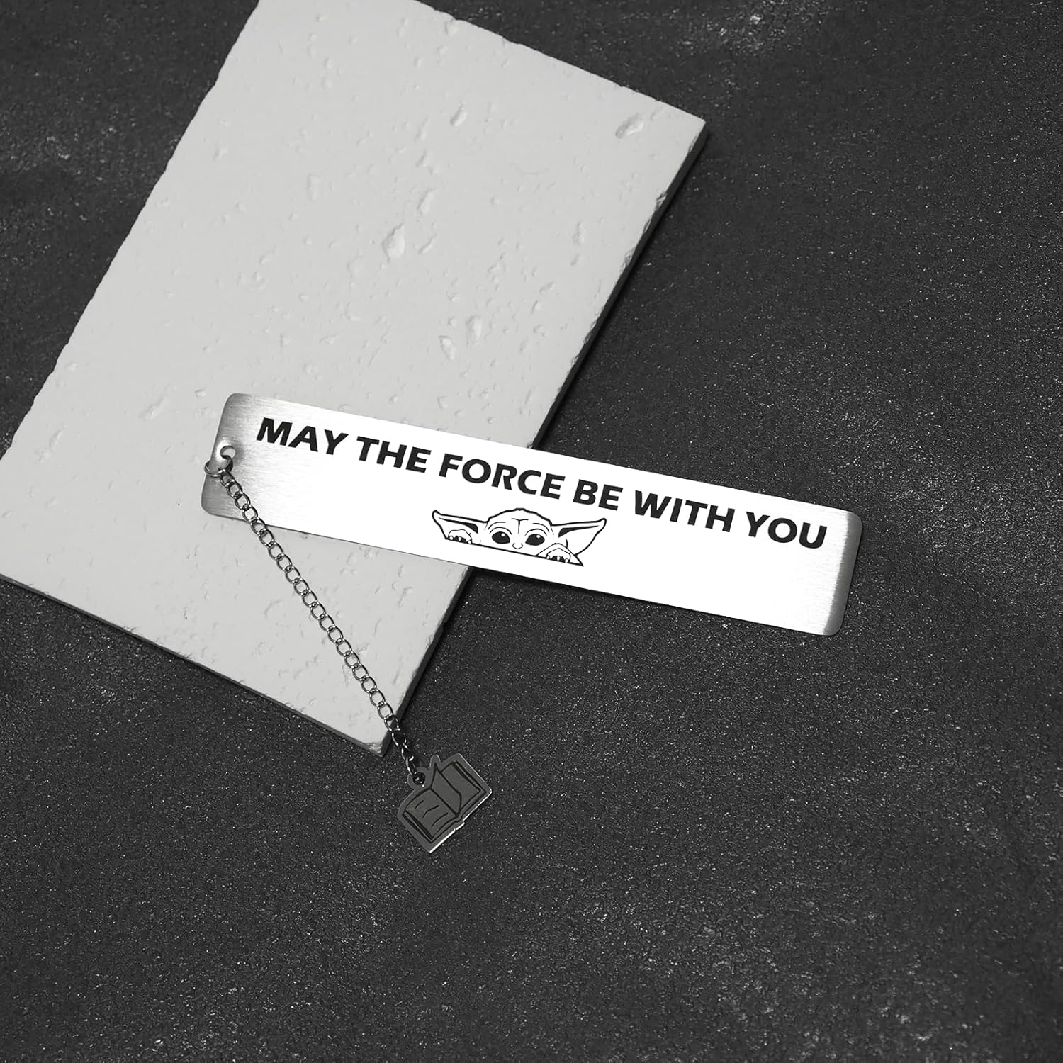 This stainless steel Star Wars bookmark measures 1.02×5.11 inches and features the iconic quote "May the Force be with you" engraved, making it a perfect gift for adults, students, and teachers.