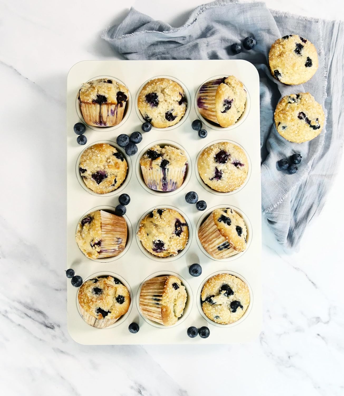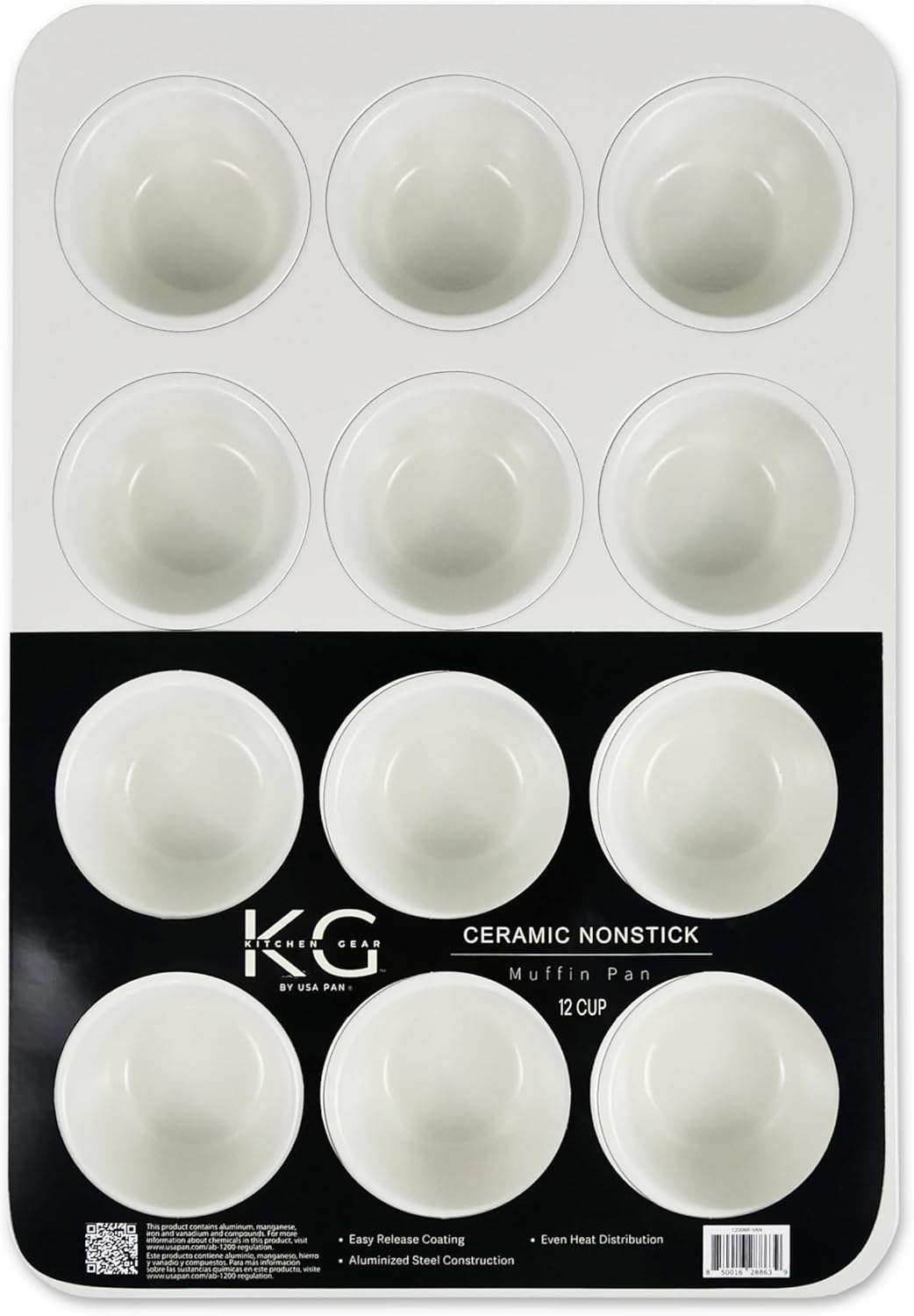 Muffin pans are one of the most versatile pans for the kitchen!   They make muffins, yes…but so much more!  Stuffing balls?  Individual Mac n’ Cheese servings?  Yes!  You can make a batch of 12 standard size muffins, but skip a space between, fill just a tad bit more and boom, you have bakery style large muffins!  Not only are they great for baking, but super for craft projects, separating sprinkles for cookie parties, holding dye for easter eggs!  Let you imagination run wild!  And your favorite commercial quality bakeware just got a tasty new look! Kitchen Gear by USA Pan offers a bright, fresh vanilla colored ceramic bakeware! This ceramic collection will brighten your kitchen without the fear of staining! Ceramic makes a great nonstick coating because its natural characteristics make it scratch and rust resistant and it has a higher silicone oil content making it super slippy and nonstick! Foods slides right out and it cleans up like a dream. The Kitchen Gear collection by USA Pan is made from our commercial quality aluminized steel for strength and even heating and baking. It’s the material trusted by commercial bakeries around the world. We love that this new ceramic bakeware is designed from all our seamless pieces meaning they release baked goods more easily and are faster to clean. While our ceramic collection IS dishwasher safe, baked on mess just slides right off these tasteful pans with one swipe of a sponge or a wet paper towel. We love a quick hand wash. Ceramic coating is oven safe to 550 Fahrenheit. Made without PTFE, PFOA, PFAS, lead, cadmium and other toxic materials. What’s not to love?