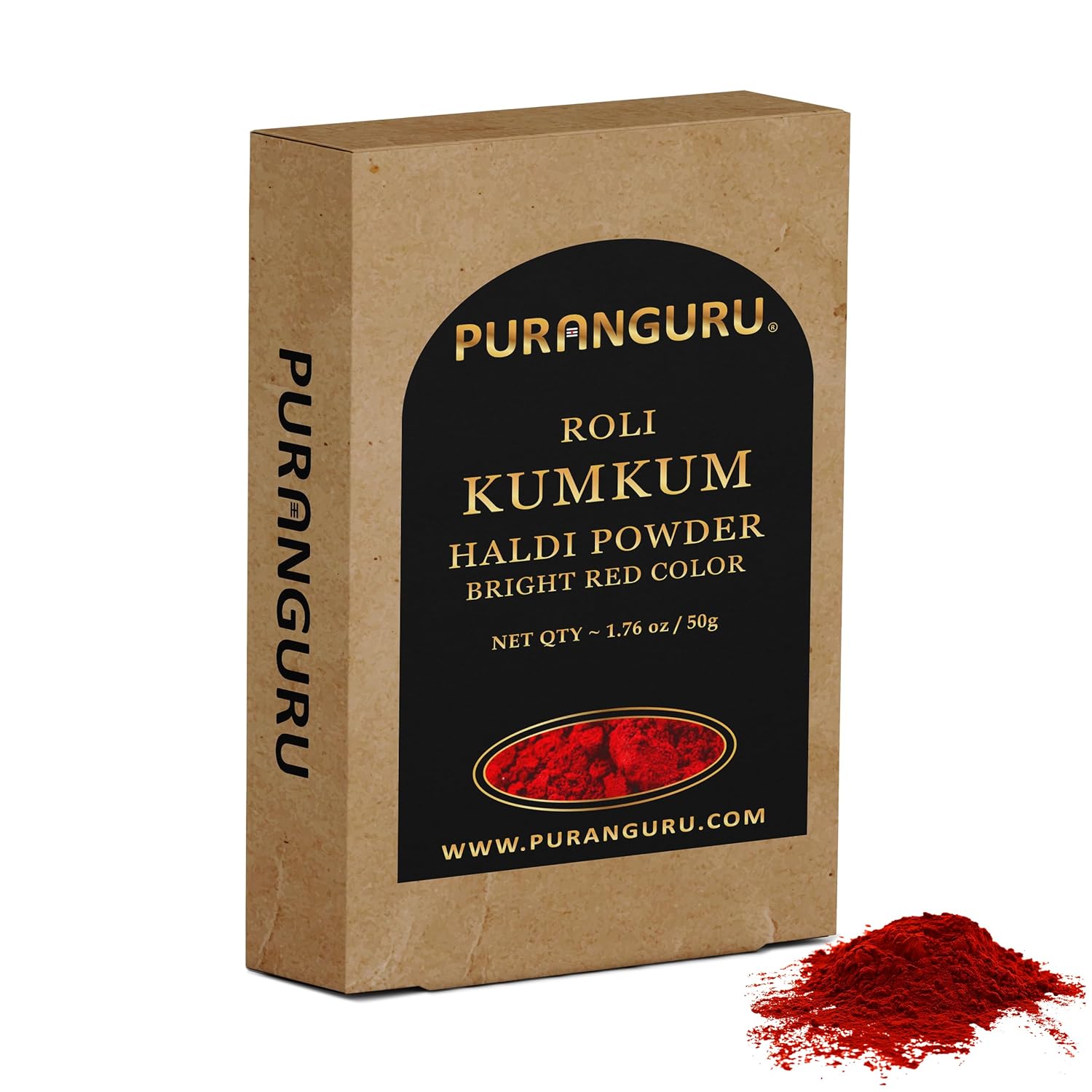PuranGuru Roli Kumkum Powder | 50g/1.76 oz | Bright Red Color | Haldi Kumkum Powder for Puja Makeup | Suhag Tilak Sindoor Ceremonial Mark | Hindu Pooja Indian Rakhi Kumkuma | Bridal Bindi Sindur Tikka