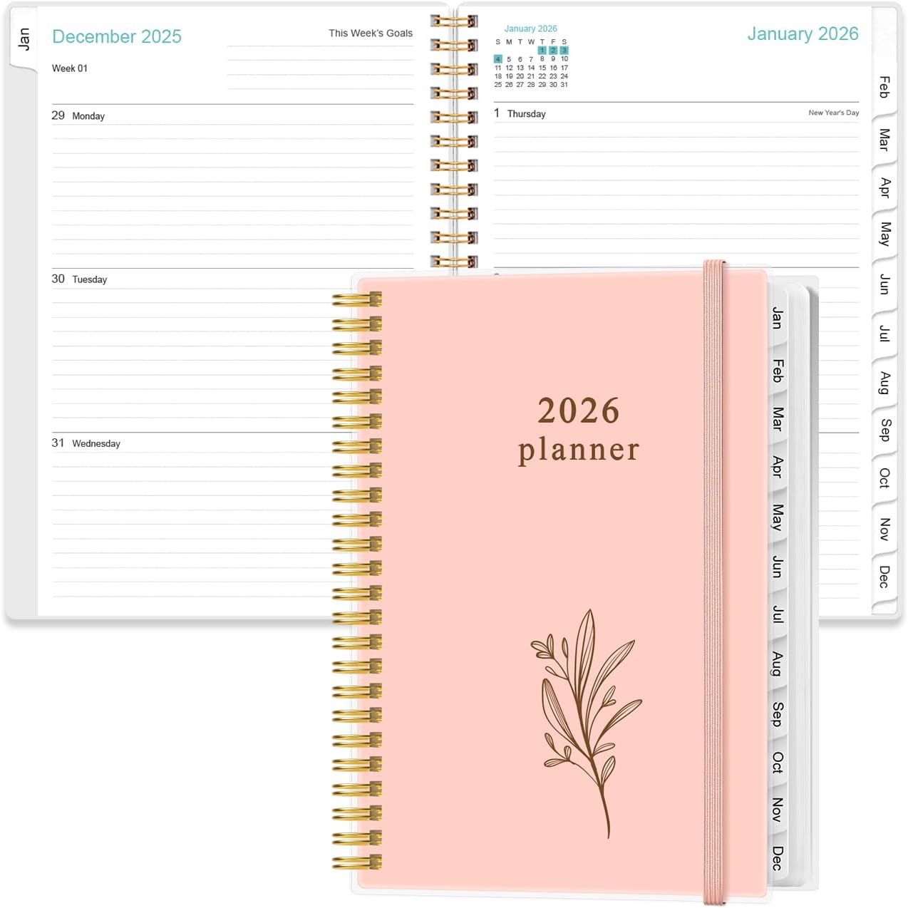 2026 Planner - Planner 2026 from January 2026 to December 2026, Weekly & Monthly Planners Spiral Bound with 12 Monthly Tabs, Inner Pocket, 6.4" x 8.5", Pink