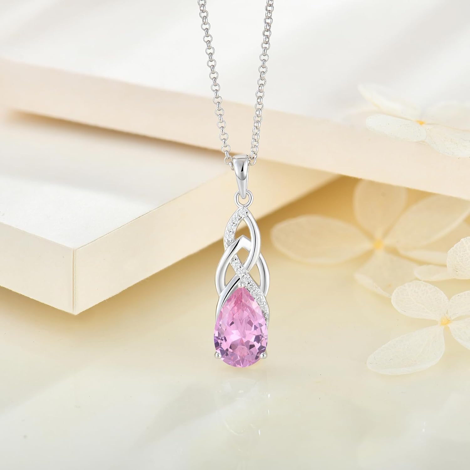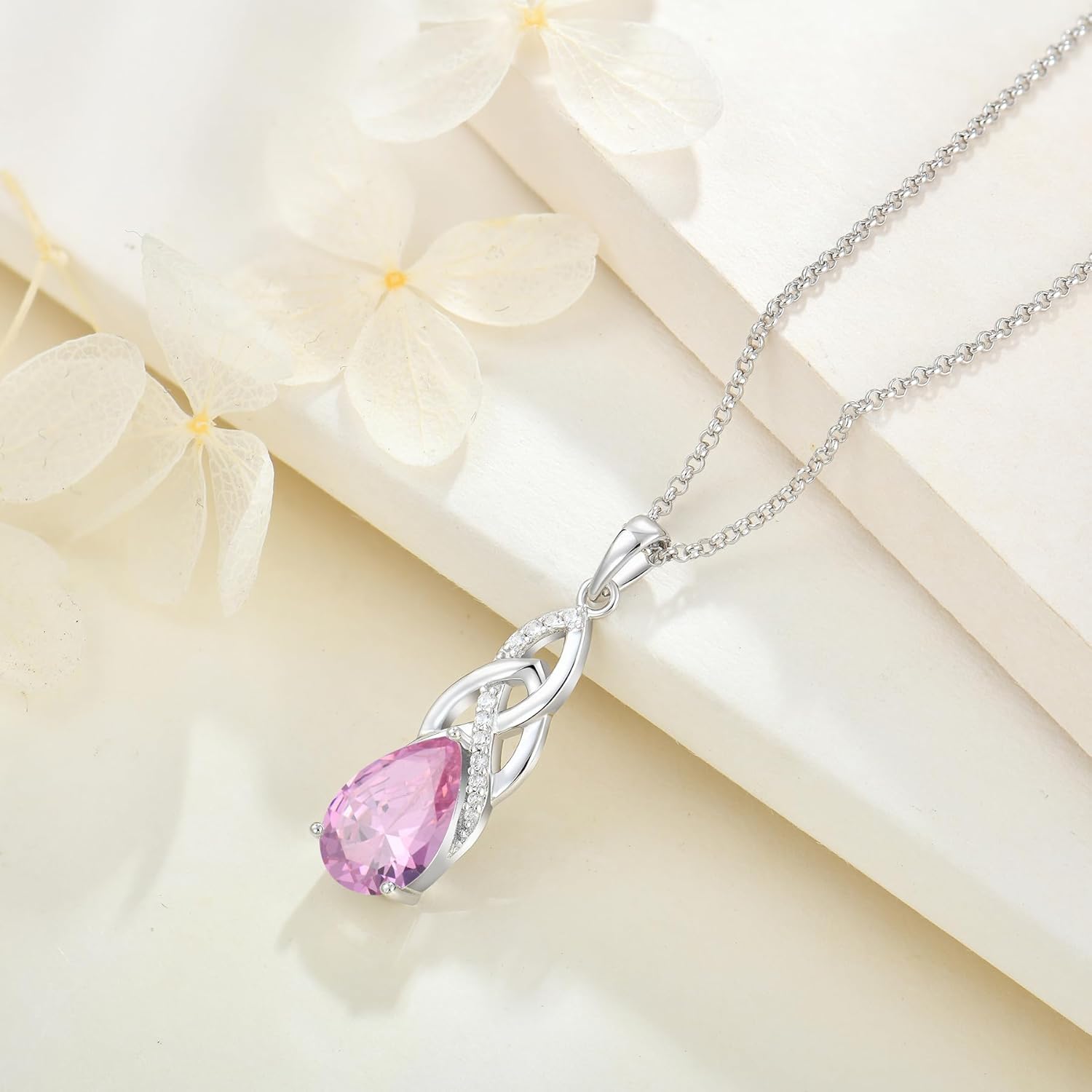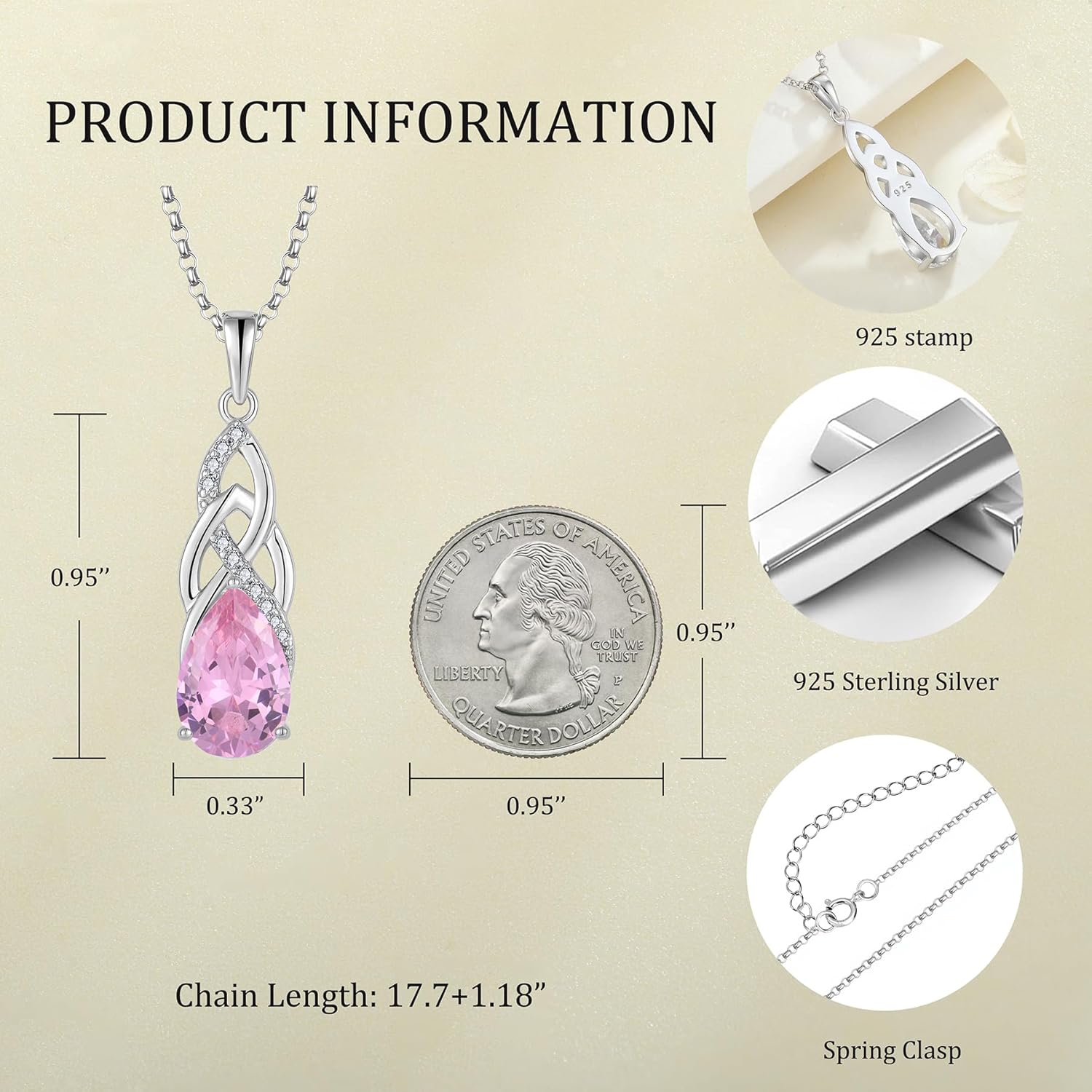 JO WISDOM Celtic Knot Infinity Necklace 925 Sterling Silver 8 * 12mm Birthstone Gemstone Pendant with 18 Inch Chain Necklace Jewelry for Women