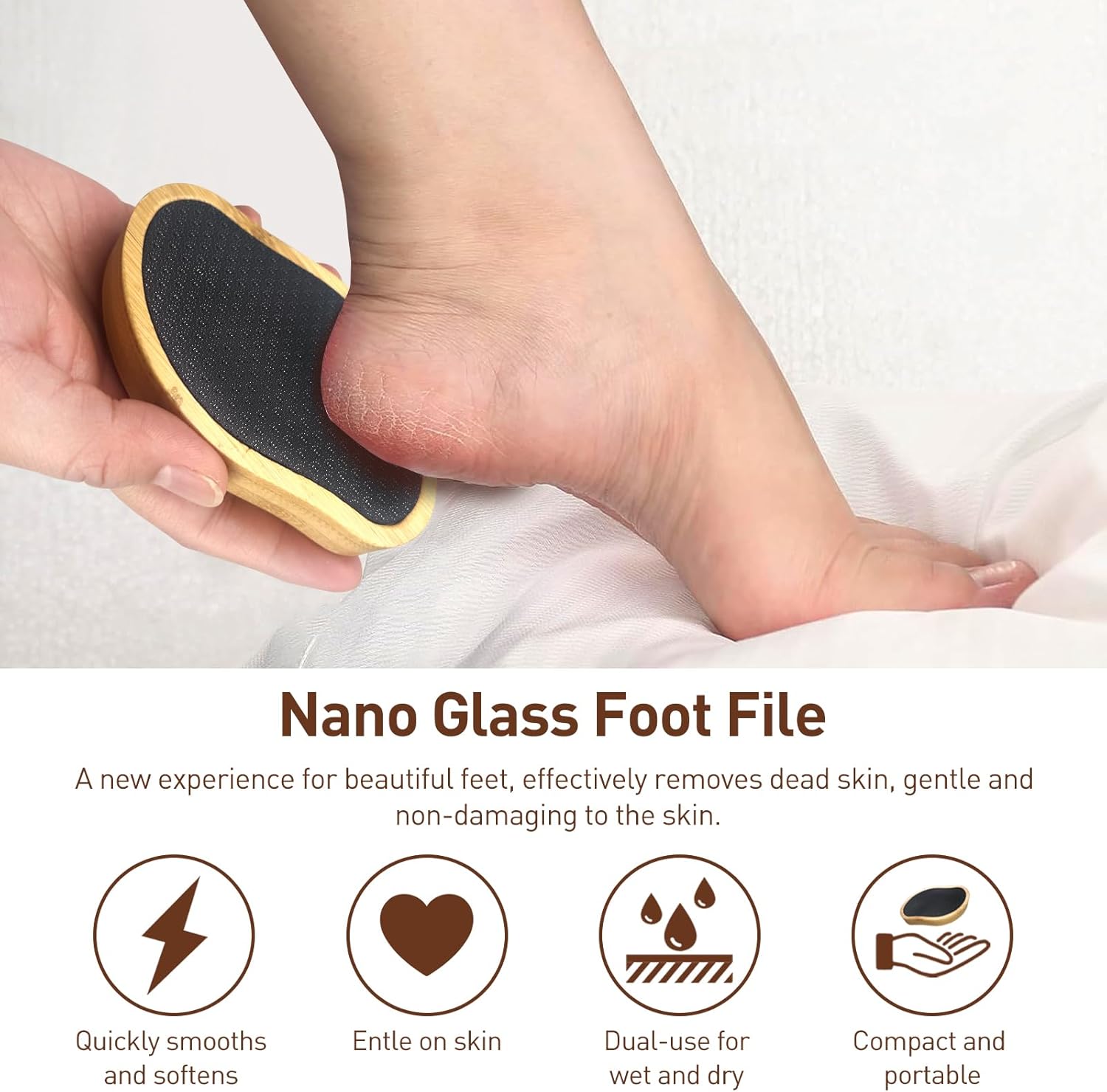 Effortlessly remove calluses and dry skin with the finely granular nano-glass foot scrubber, designed for quick and effective smoothing, ensuring your feet feel softer and look better than ever.