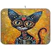Vivid Print Kitchen Countertop Dish Drying Mat, Day Of Dead Happy Sugar Skull Cat 16"" x 18"" Absorbent Slip-Resistant Table Protector Multipurpose Counter Rack Sink Drainer Pad, Floral