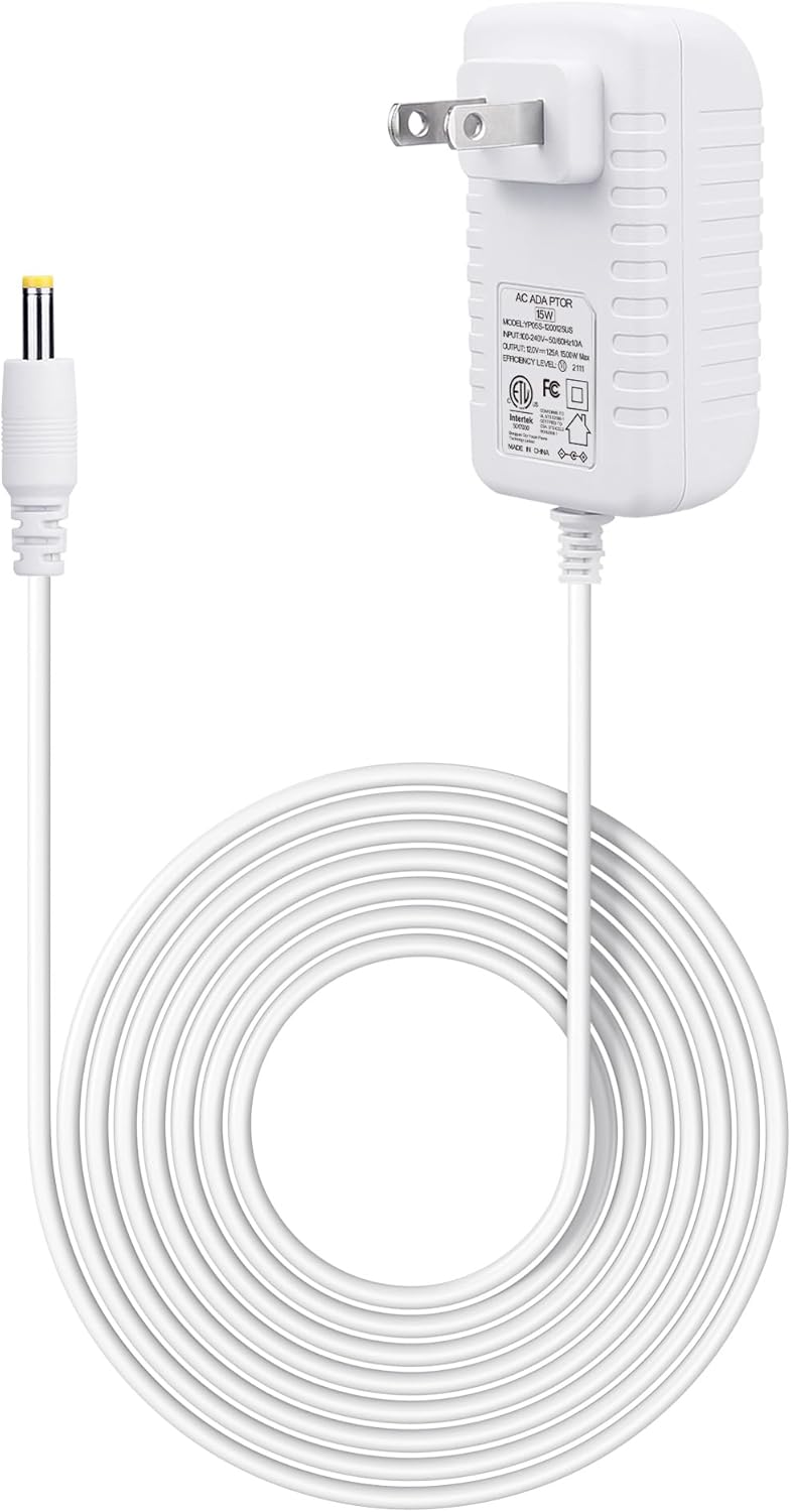Color: White. Cable Length: 1.5 meters / 5 feet. Specifications: Input Voltage: 100-240 Volts Input Frequency Range: 50/60 Hertz Output Voltage: 12 Volts Output Current: 1.25 Amps Output Power: 15 Watts Features: 1, 15W detachable power adapter wall charger using for charging and power switch. Converting AC 100-240 Volts to DC 12 Volts. 2, With 5 feet long charging cable; Durable, bendable and flexible wire is very convenient to adjust angles. 3, Better interface avoided the worrying of working stopped suddenly. Package Include: 1 x 15W White Power Cord Adapter