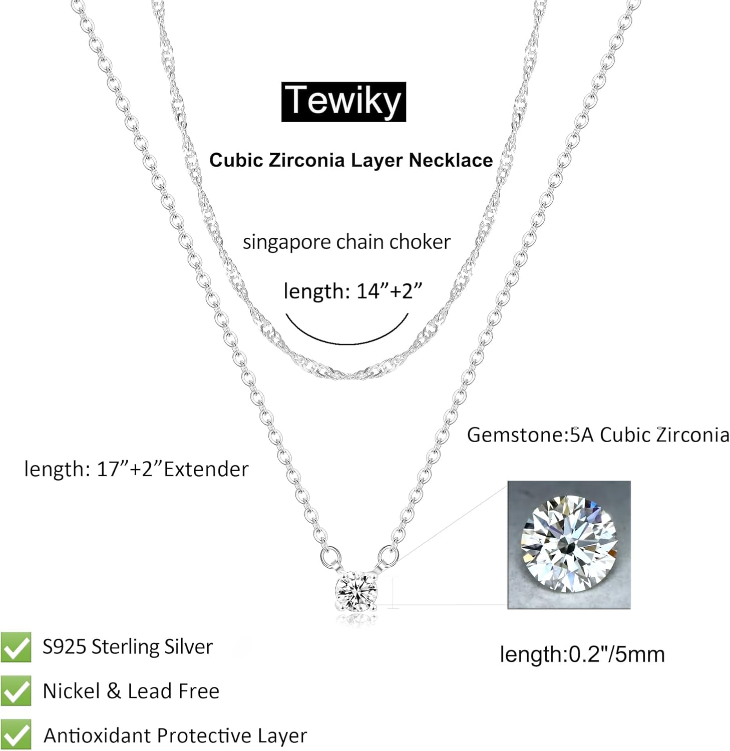 Más información para tu compra de Tewiky Cubic Zirconia Silve...
