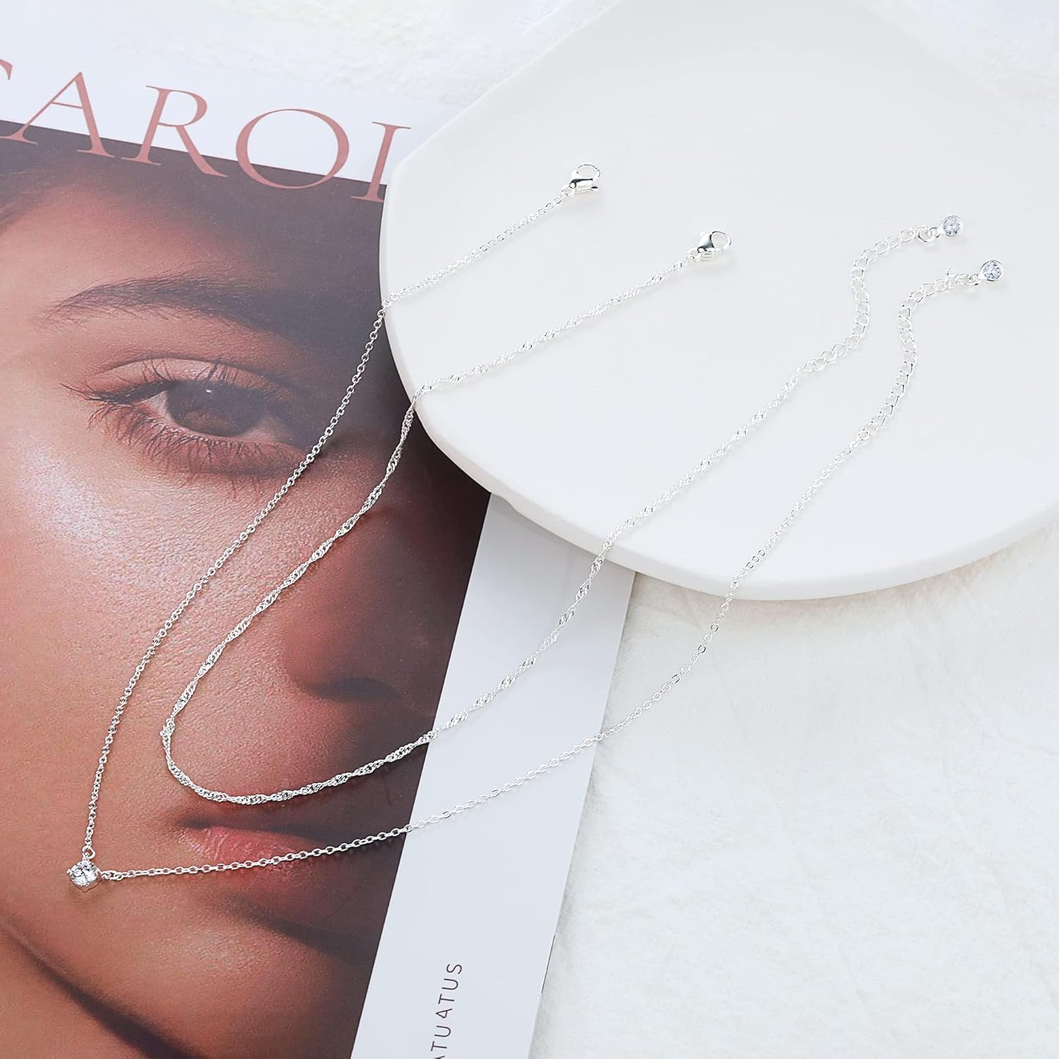 Tewiky Cubic Zirconia Silver Necklaces for Women, Dainty S925 Sterling Silver Choker Necklace Simple CZ Jewelry Necklaces for Women Trendy Gifts