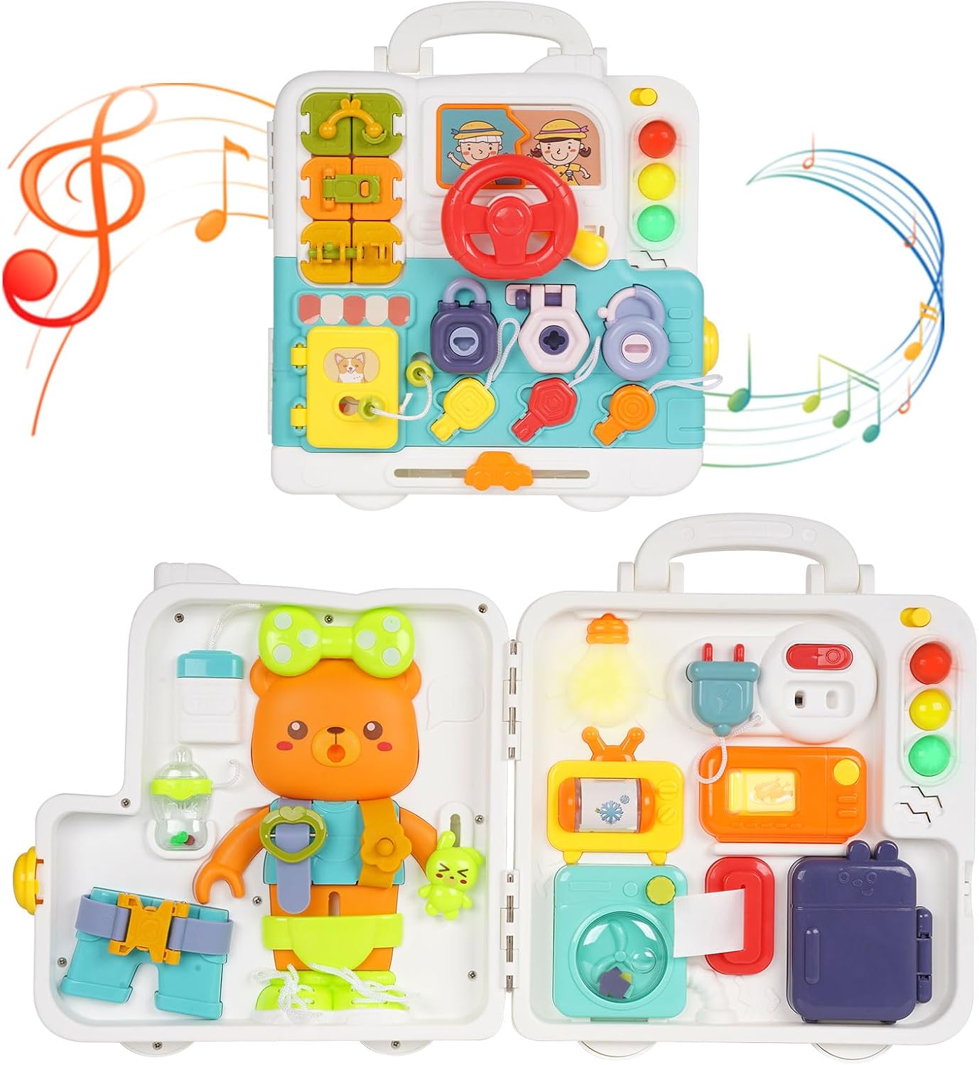 Toddler Busy Board Toys with Light Sound Montessori Sensory Travel Toys Kids Fine Motor Skill Learning Activity Board Early Educational Toy Motor Skills Developmental Toy Birthday Gift for Boy Girl