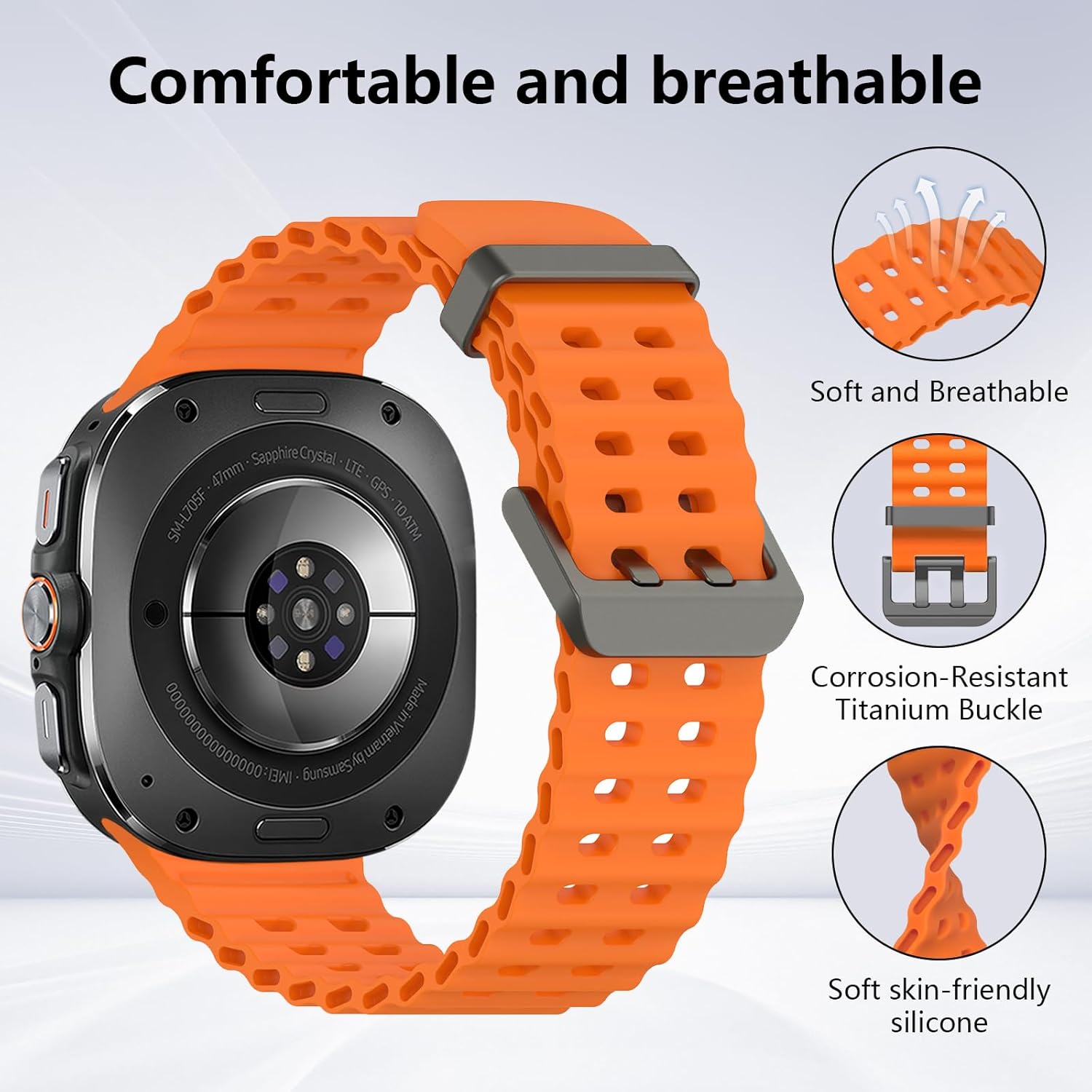 Sport Silicone Bands Compatible for Samsung Galaxy Watch Ultra 47mm(2025/2024), Breathable Wristband Waterproof Replacement Soft Silicone Strap for Women Men
