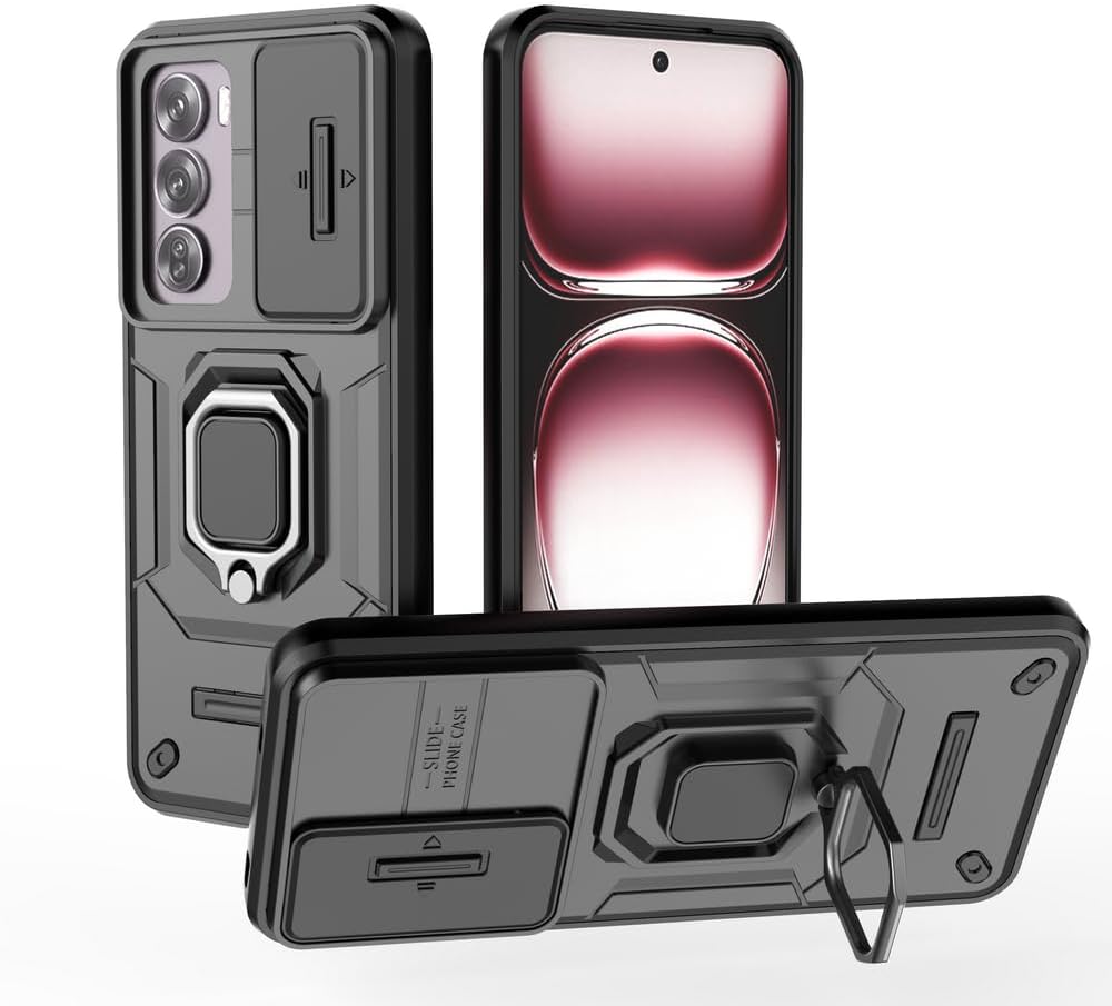 Compatible with Oppo Reno 12 Pro 5G Cell Phone Case,with Slide Camera Lens Cover Compatible with Oppo Reno12 Pro 5G CPH2629 Case Black