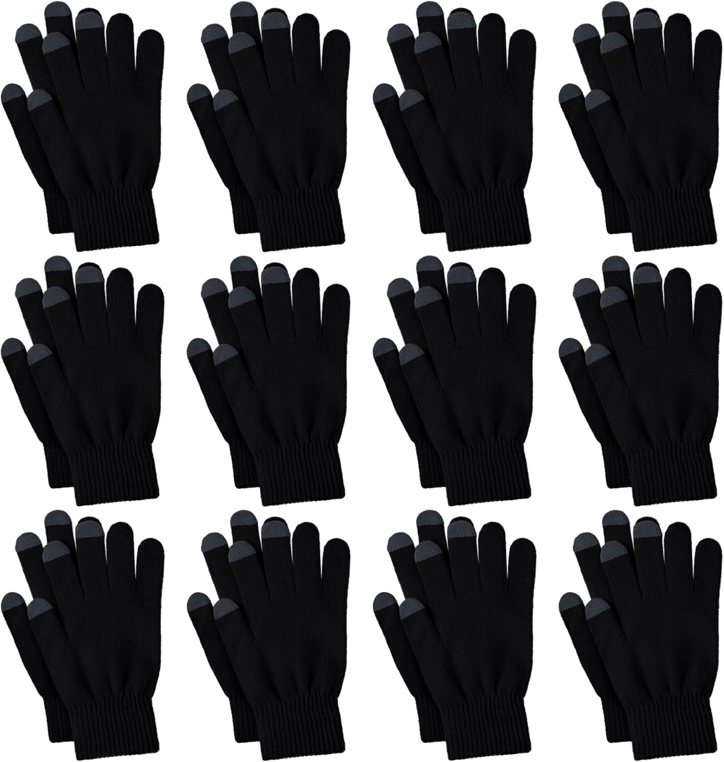 Glooarm 12 Pairs Winter Gloves with Touchscreen Fingers for Men Women Winter Magic Gloves Bulk Knit Texting Gloves