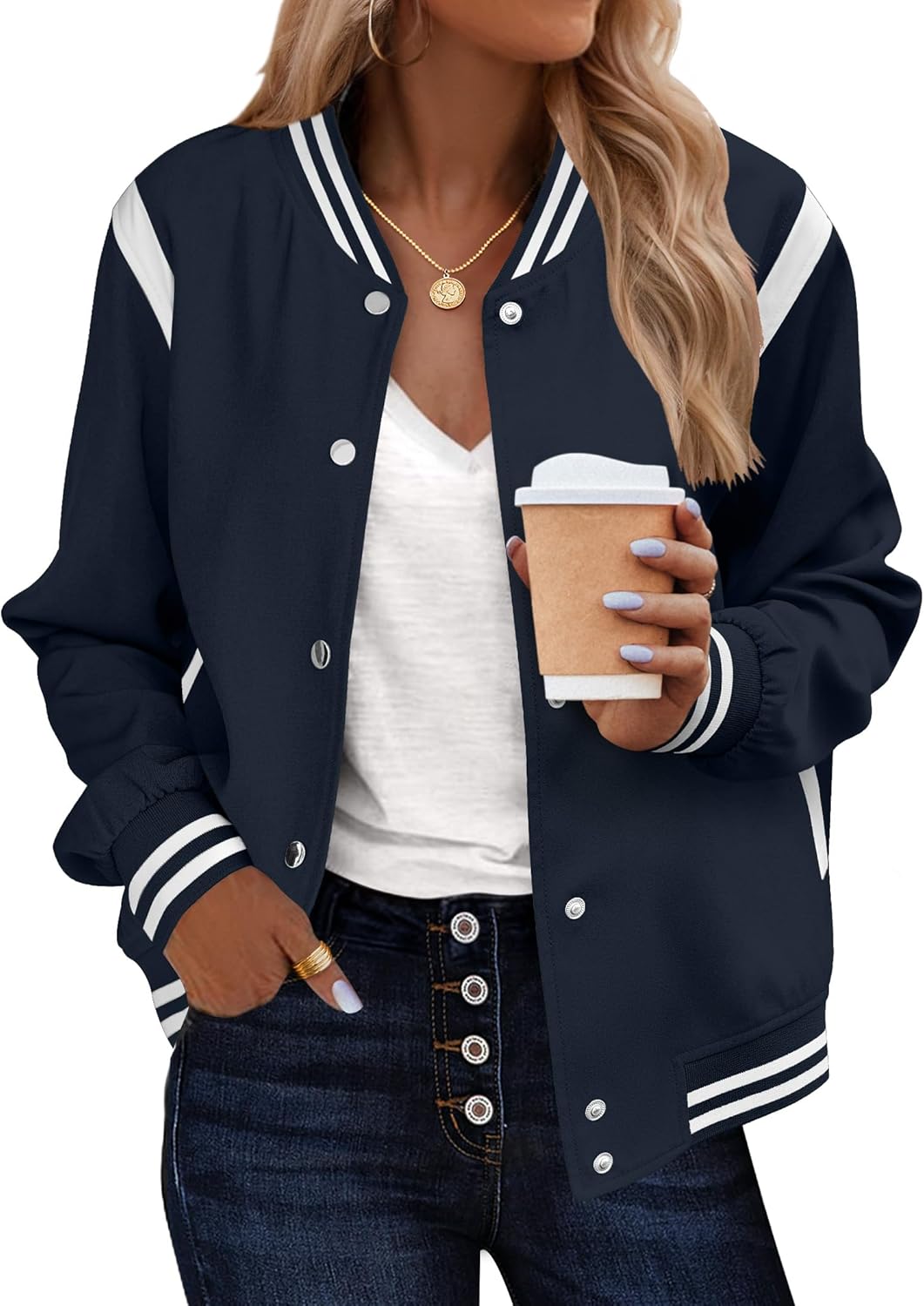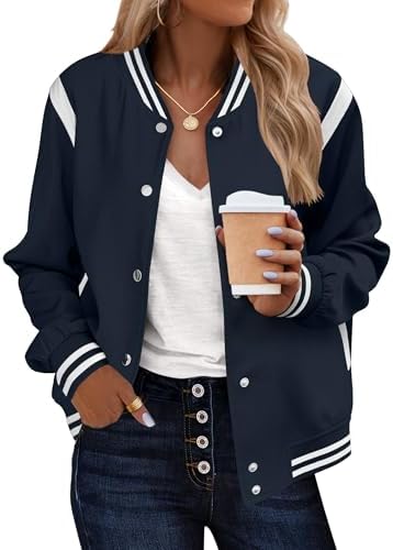 Zeagoo Bomber Jacket Women Varsity Casual Button Down Lightweight 2025 Fall Fashion Short School Outfits with Pockets